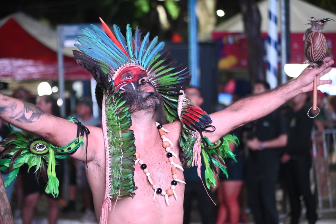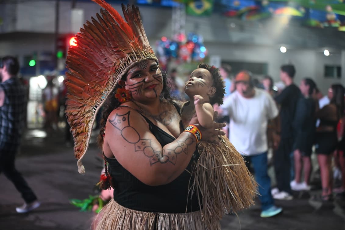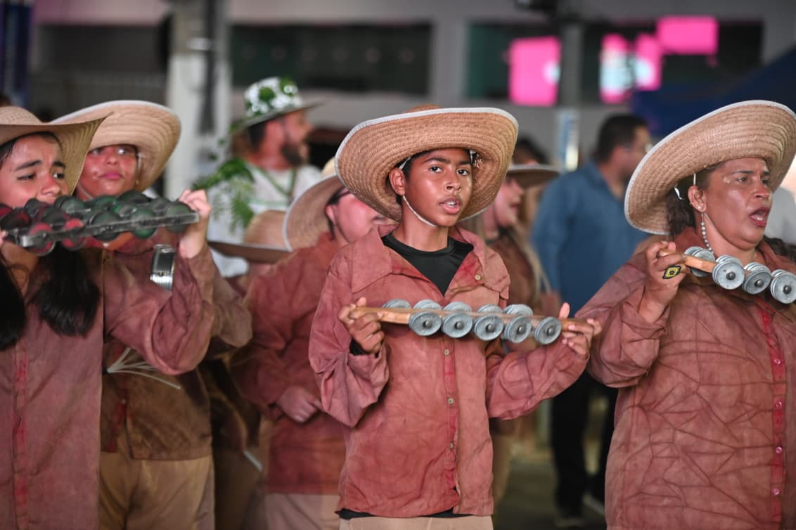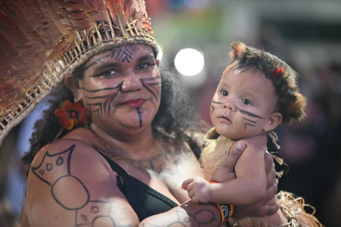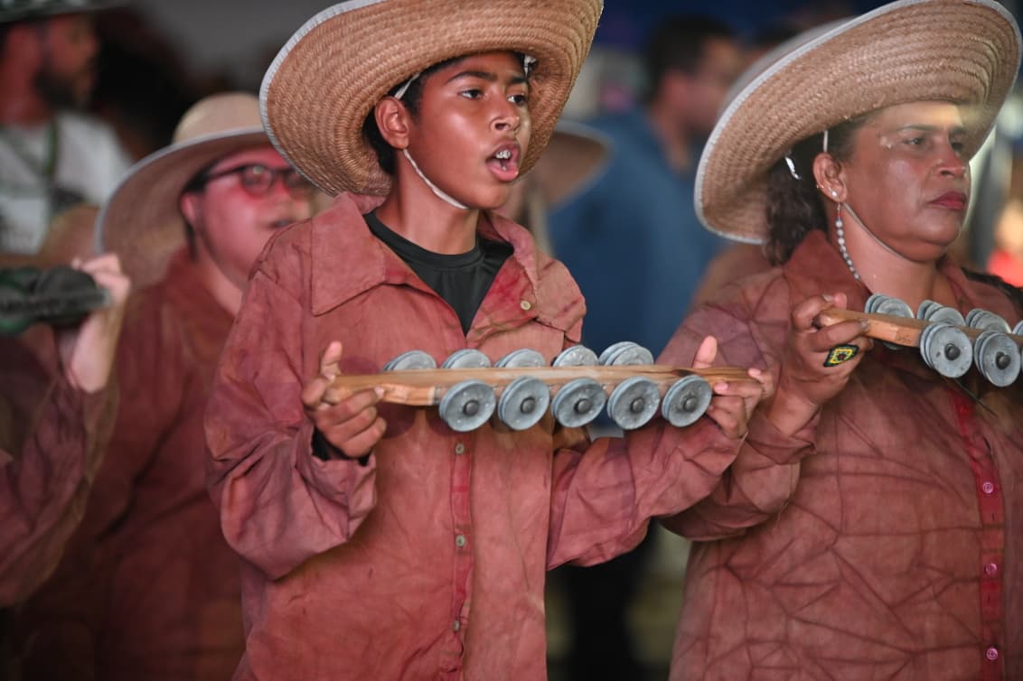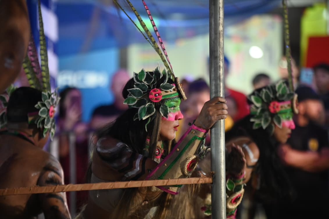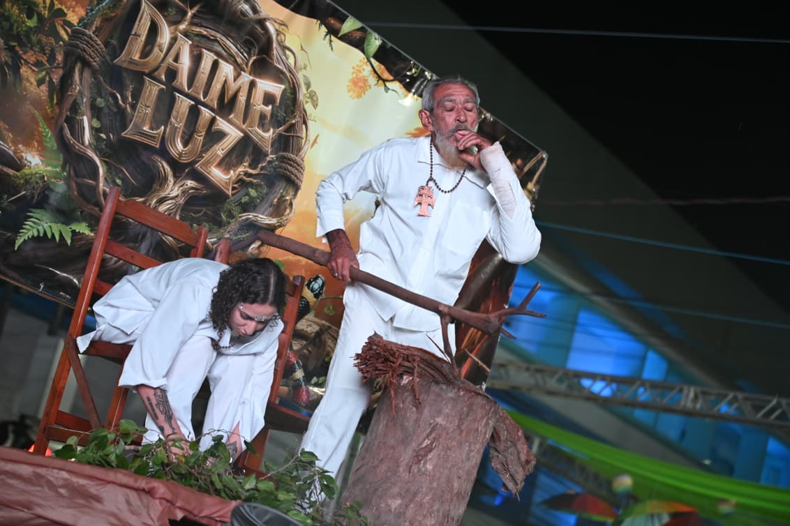 Com cerca de 400 brincantes – número que superou as estimativas iniciais – o bloco apresentou um cortejo organizado, com alegorias simbólicas e fantasias que remetiam à floresta, à fé e aos saberes tradicionais.