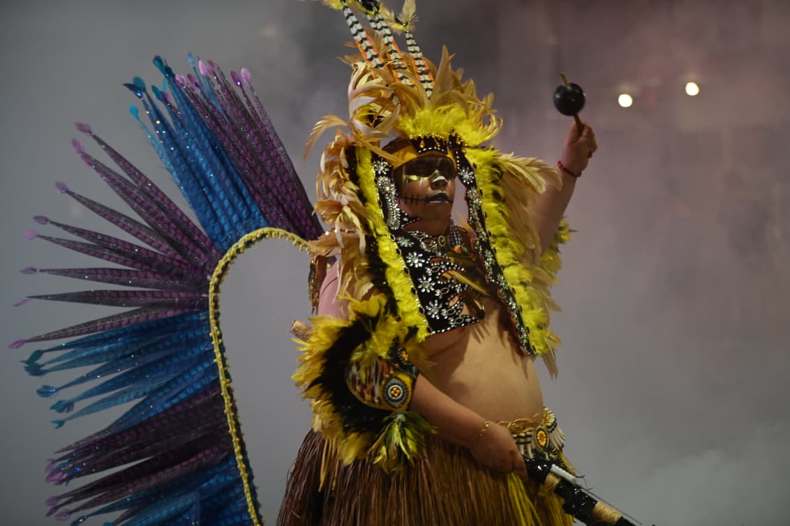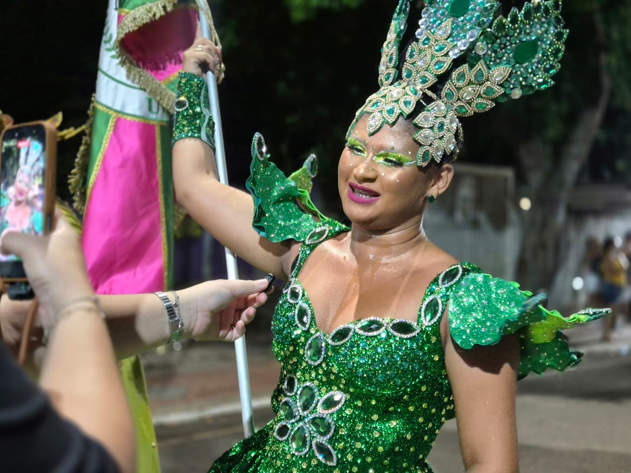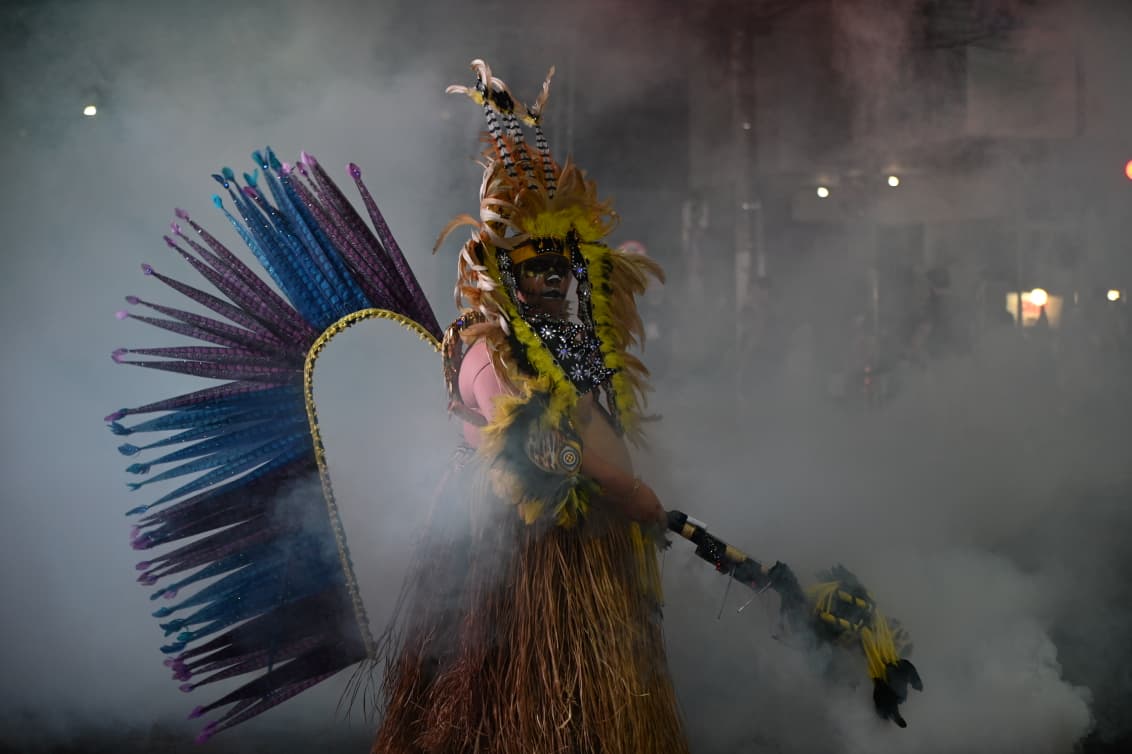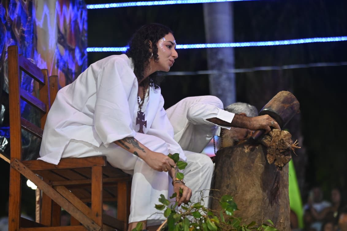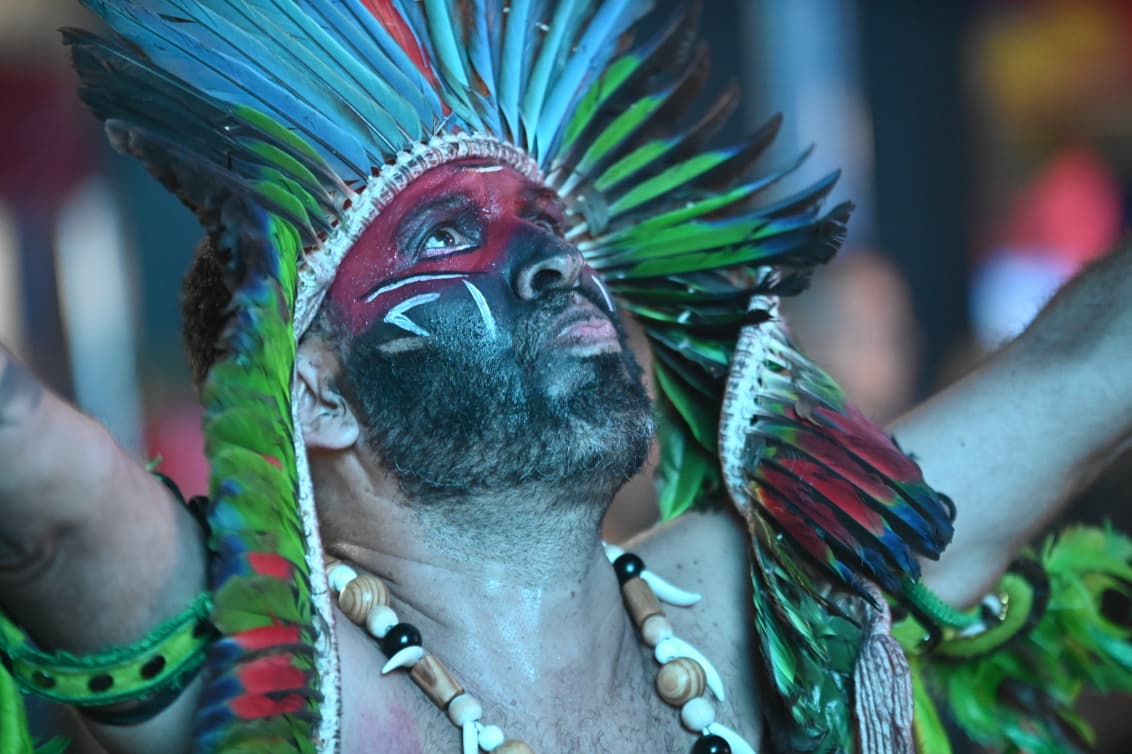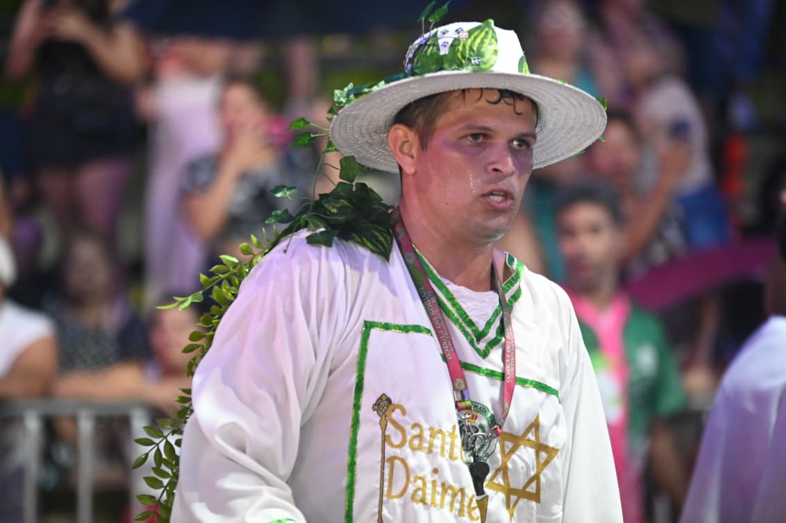 Com cerca de 400 brincantes – número que superou as estimativas iniciais – o bloco apresentou um cortejo organizado, com alegorias simbólicas e fantasias que remetiam à floresta, à fé e aos saberes tradicionais.