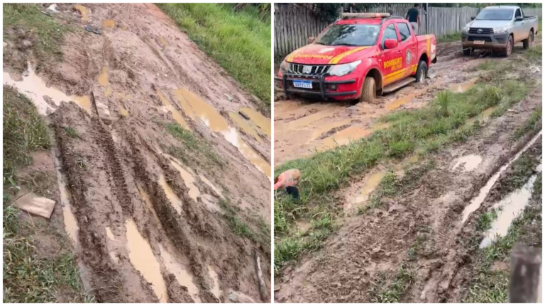 Um vídeo encaminhado à reportagem mostra a gravidade do problema. Nas imagens, um veículo do Corpo de Bombeiros aparece atolado, precisando ser puxado por outro automóvel para conseguir sair do local. O episódio evidencia que as más condições da via comprometem até mesmo atendimentos de emergência.