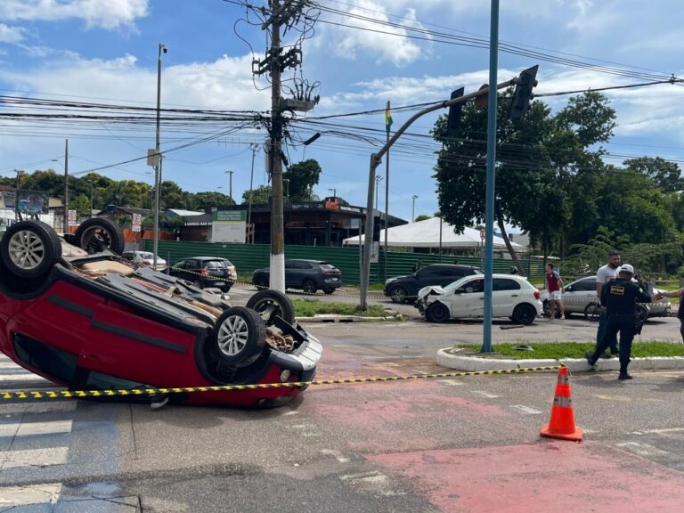 De acordo com informações apuradas no local, a motorista do Fox teria avançado o sinal vermelho e atingido o Gol, que trafegava normalmente pela via. Com o impacto, o Fox capotou e ficou com as rodas para cima no meio da pista, chamando a atenção de quem passava pelo local.