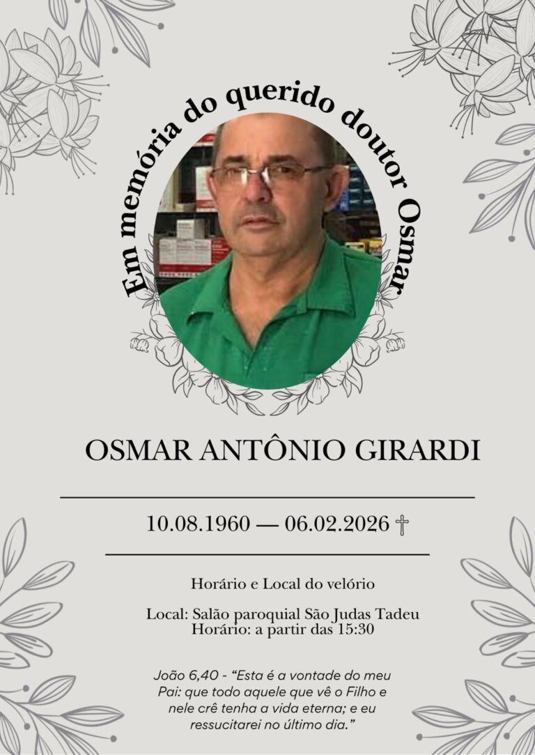 Leia também: Luto! Morre seu Osmar Girardi, proprietário de farmácia no Universitário, em Rio Branco