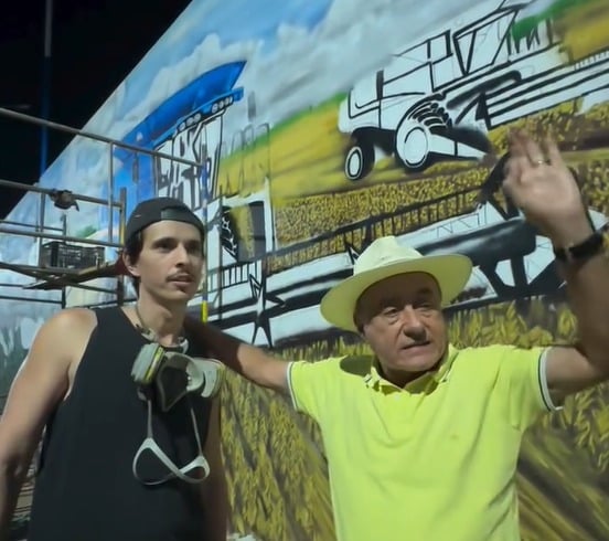 Os murais, assinados pelo artista Maná, retratam colheitas, máquinas agrícolas e elementos da produção rural, além de referências à floresta. Para o prefeito, a proposta vai além da estética. “Isso aqui é obra de arte, mas é também reconhecimento. O agro é forte, é quem movimenta a economia, é quem gera emprego. A gente precisava deixar isso estampado num espaço tão importante da cidade”, declarou.