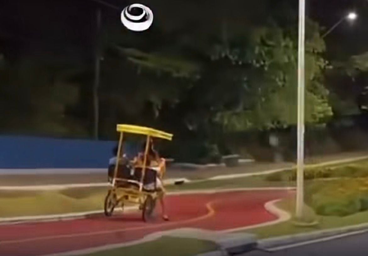 Momentos antes do triciclo tombar/ FOto: Reprodução