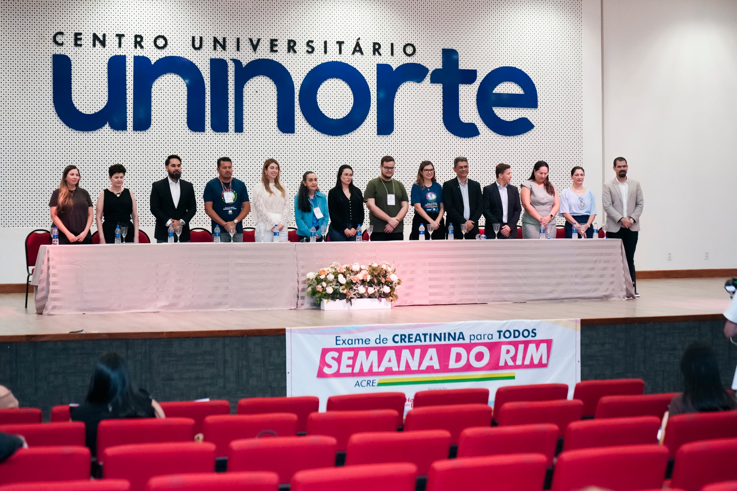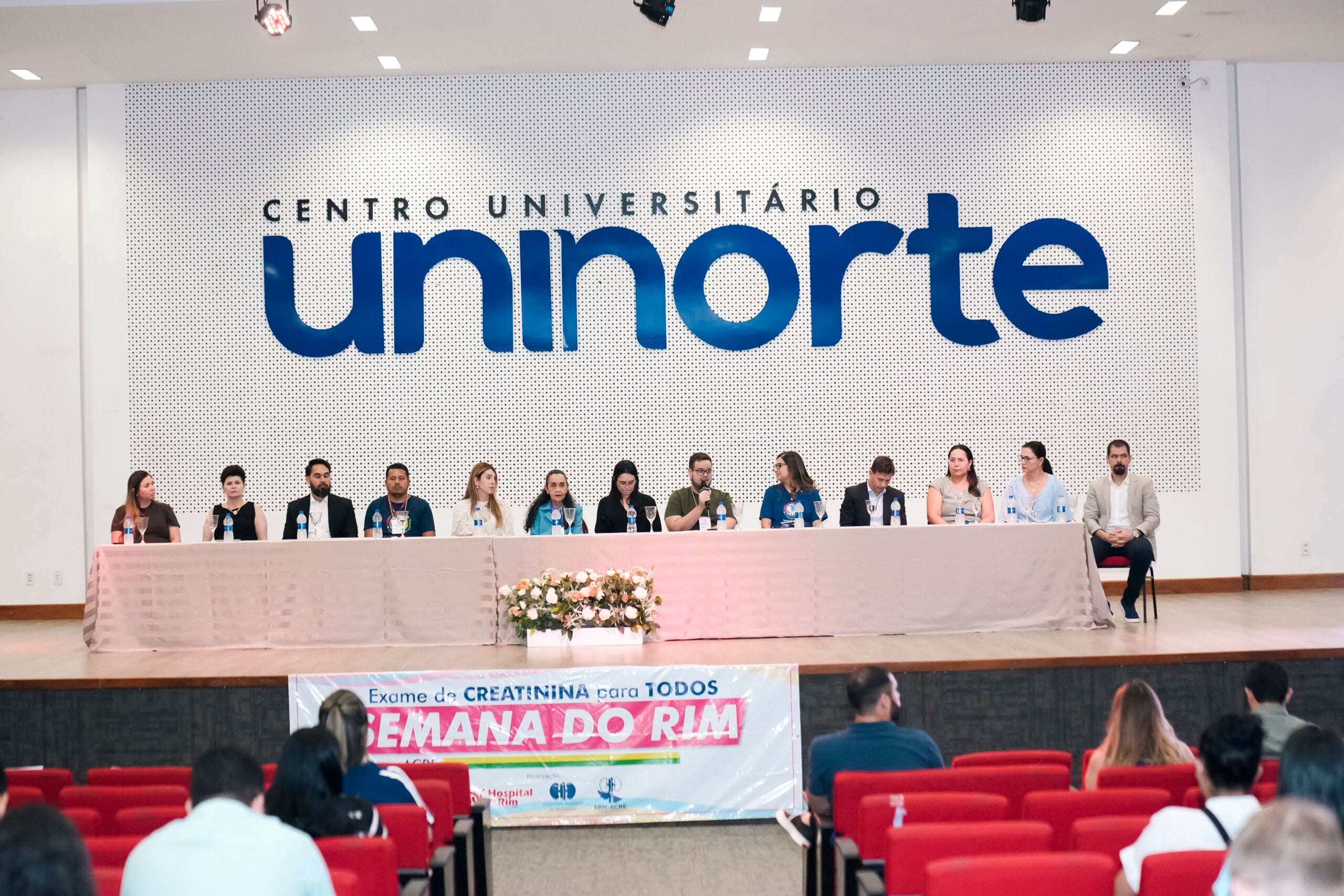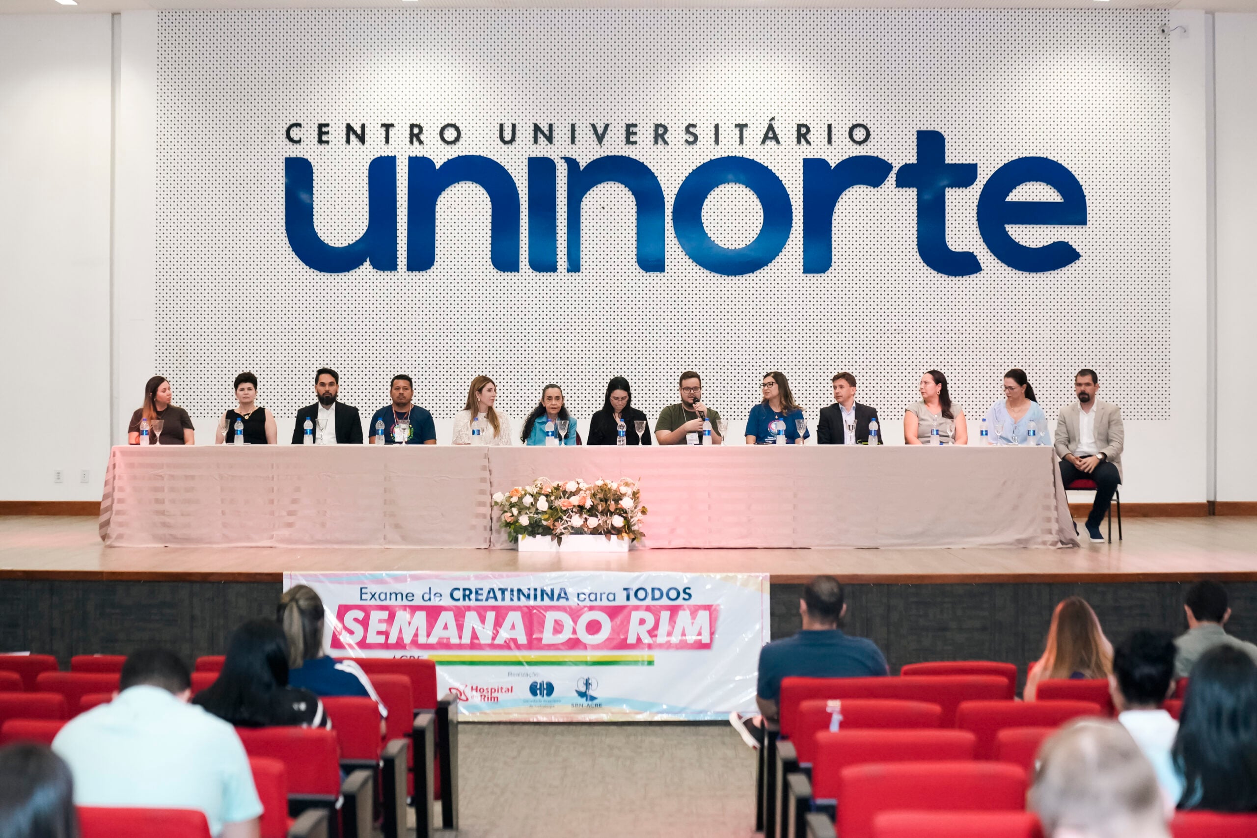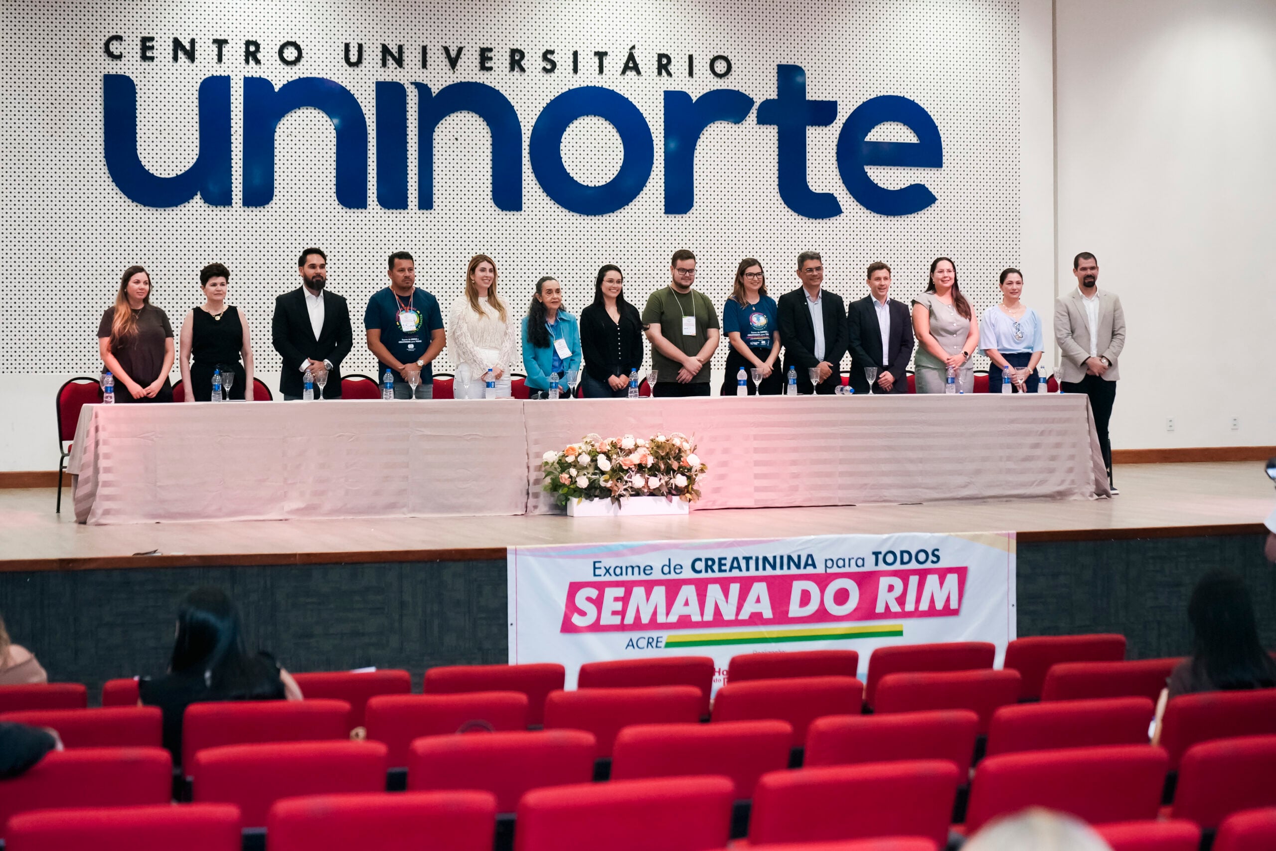 A abertura do Simpósio contou com a presença de profissionais da Saúde e autoridades, como a coordenadora de Transplante da Fundação Hospitalar Governador Flaviano Melo (Fundhacre), Valéria Monteiro; Coordenadora do curso de Medicina da Uninorte, Dra. Rita Uchoa; representante do Sicoob, Álvaro Júnior; representante da Associação de Pacientes Renais (Apartac), Silvério Júnior; presidente da Fundhacre, Sóron Steiner; nefrologista, Dra. Luciene Pereira de Oliveira; representante do deputado Pedro Longo, Camila Souza; deputado federal Eduardo Velloso; representante GEAP, Antonia Miguelina Vieira; Dra. Priscila Murad e o secretário de Estado de Saúde, Pedro Pascoal.