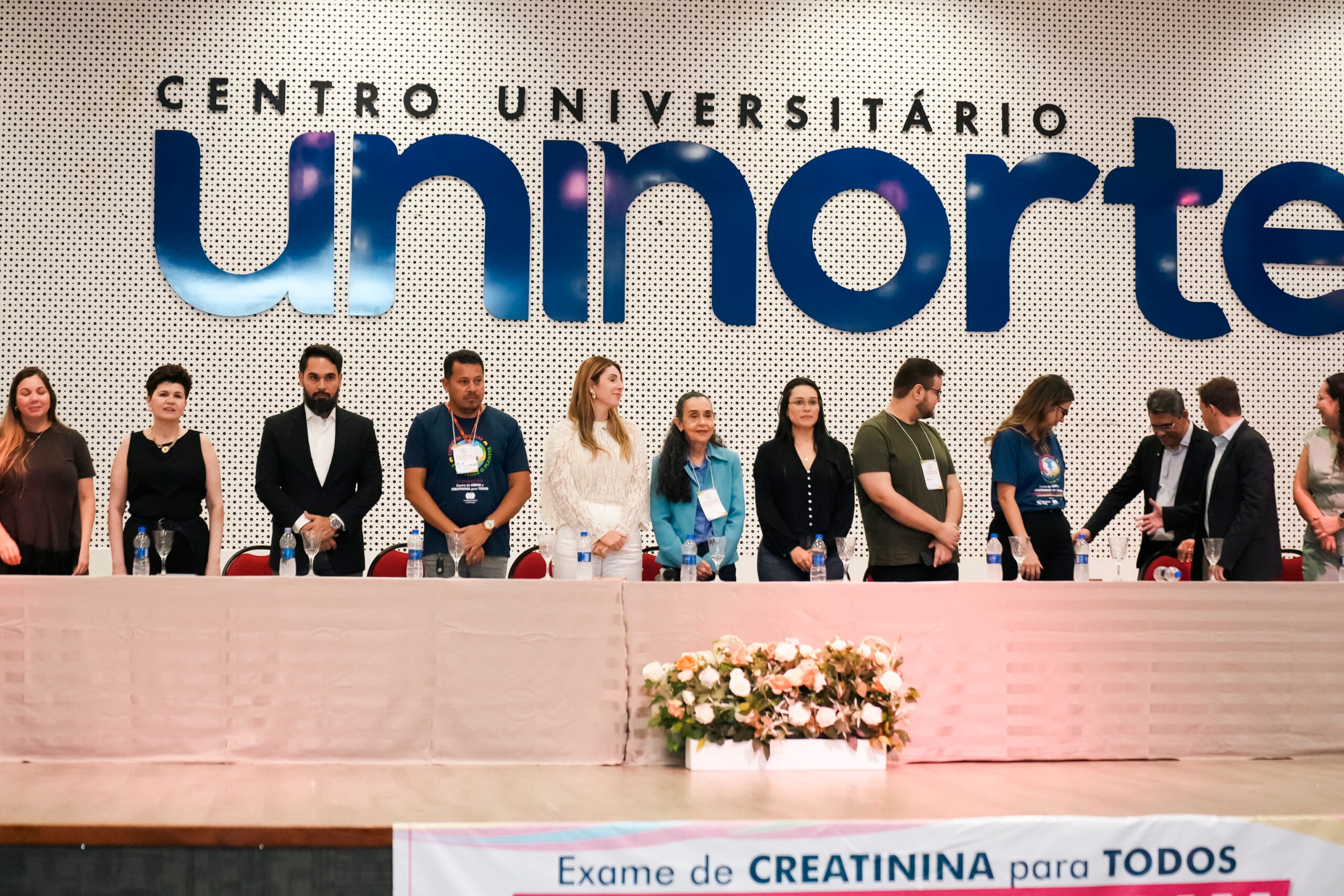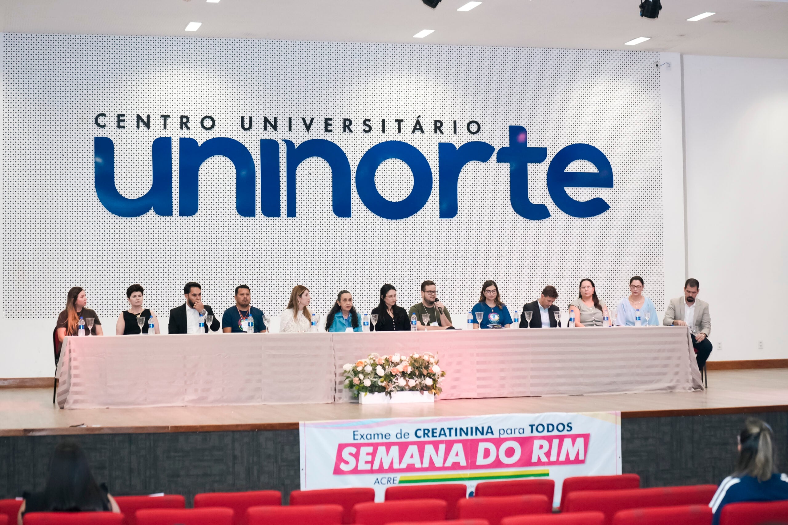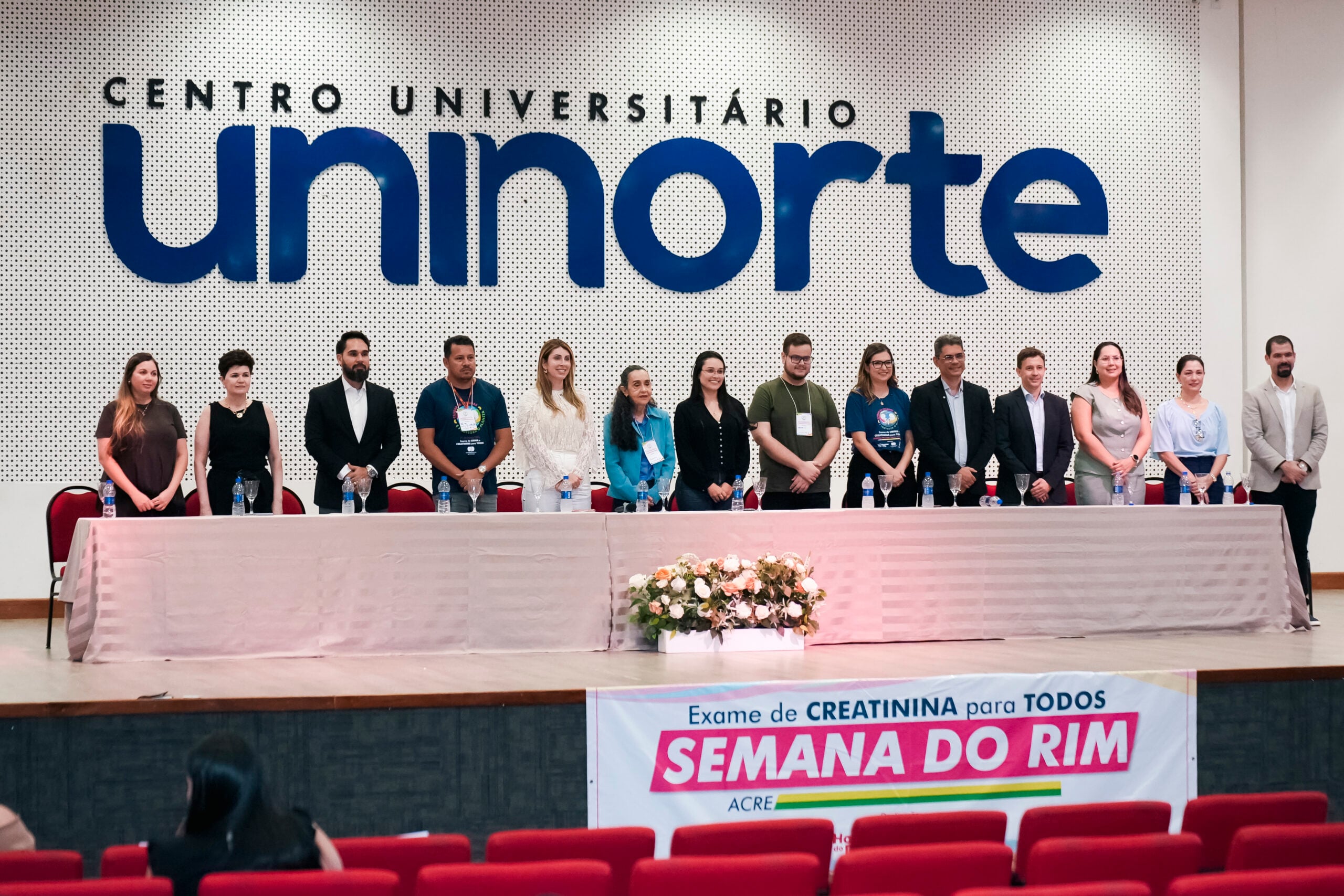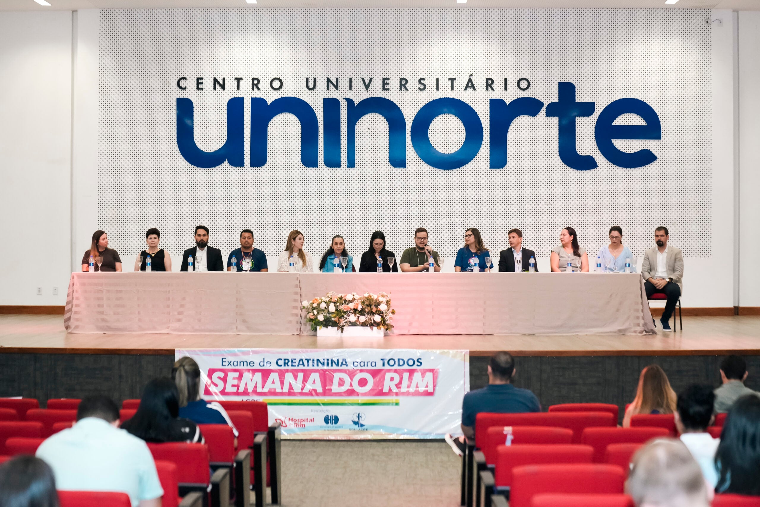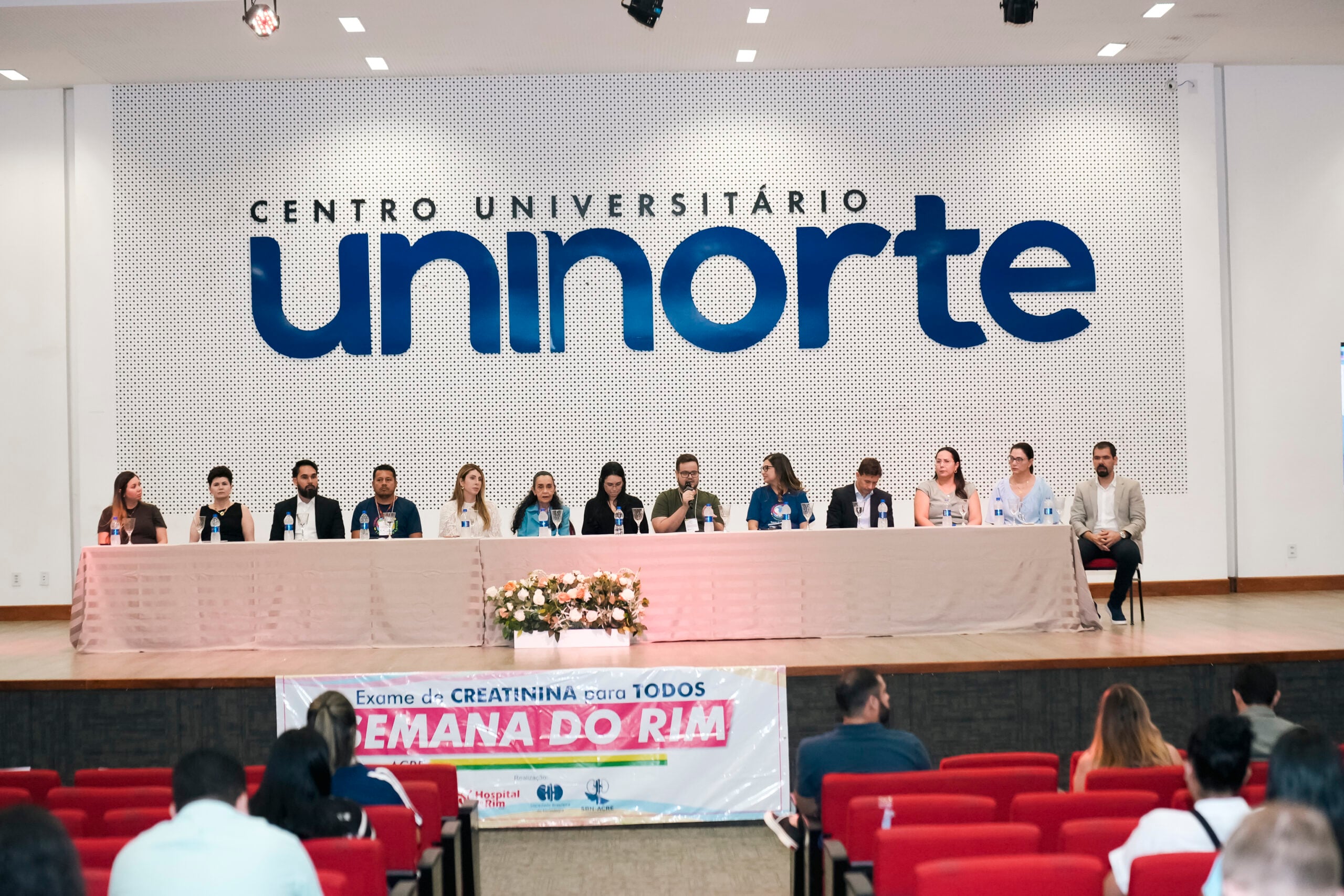 A abertura do Simpósio contou com a presença de profissionais da Saúde e autoridades, como a coordenadora de Transplante da Fundação Hospitalar Governador Flaviano Melo (Fundhacre), Valéria Monteiro; Coordenadora do curso de Medicina da Uninorte, Dra. Rita Uchoa; representante do Sicoob, Álvaro Júnior; representante da Associação de Pacientes Renais (Apartac), Silvério Júnior; presidente da Fundhacre, Sóron Steiner; nefrologista, Dra. Luciene Pereira de Oliveira; representante do deputado Pedro Longo, Camila Souza; deputado federal Eduardo Velloso; representante GEAP, Antonia Miguelina Vieira; Dra. Priscila Murad e o secretário de Estado de Saúde, Pedro Pascoal.