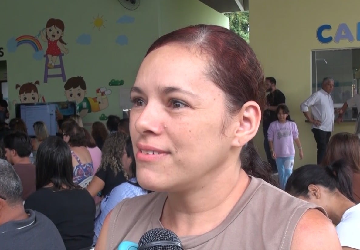 “Veio em boa hora, principalmente porque é no início do ano”, diz Keiliane Bandeira, mãe de aluna. — Foto: Reprodução/prefeitura