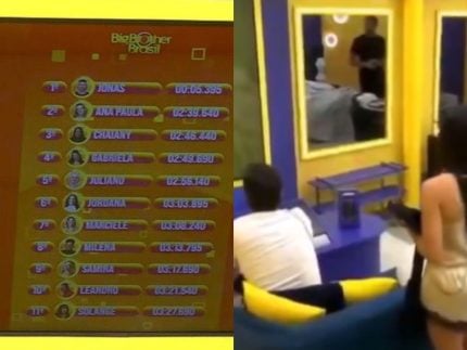 “Ih, o que é isso?”, exclama Jordana ao ver o ranking. “Deu tilt (erro)”, responde Alberto Cowboy. “Quem estava em primeiro? E eu estava em quanto?”, questiona a sister. “Em segundo, sei lá, deve ser uma tela de teste, alguma coisa assim que apareceu”, afirma o líder Cowboy.