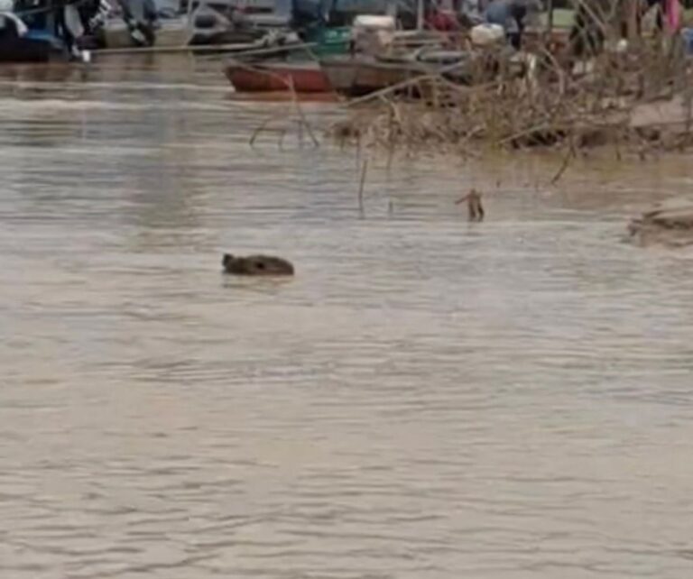 Um morador identificado como Pablo, de Nova Olinda, registrou na tarde deste domingo (1º) a presença de uma capivara nas águas do Rio Iaco, em Sena Madureira. O flagrante aconteceu nas proximidades da Ponte Padre Paolino, área de intenso fluxo de pedestres e veículos.