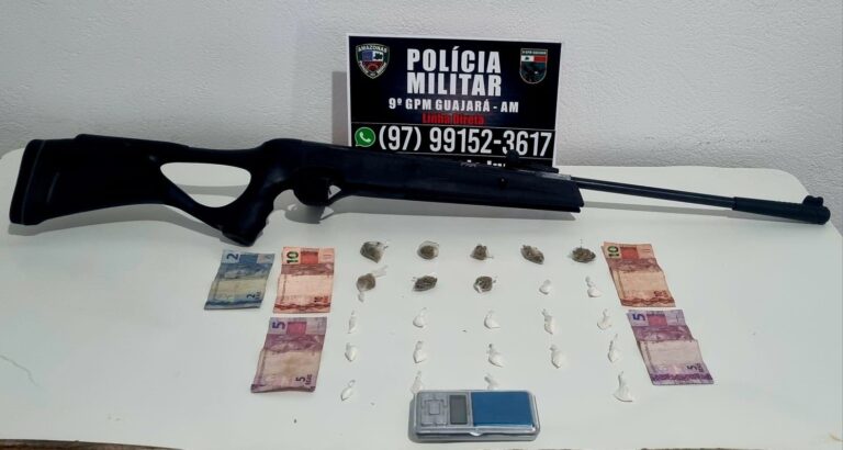 Um homem foi preso em flagrante por tráfico de drogas e posse de arma adulterada por policiais do 9º Grupamento de Polícia Militar (GPM) na tarde desta quinta-feira (18), no município de Guajará, no Amazonas.