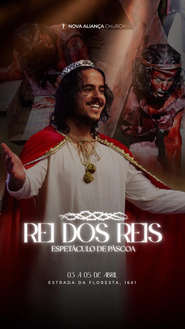 A Igreja Nova Aliança Church realizará, nos dias 3, 4 e 5 de abril, o espetáculo de Páscoa “Reis dos Reis”, em Rio Branco. A apresentação especial promete emocionar o público ao transmitir uma mensagem de fé, esperança e renovação por meio da arte.