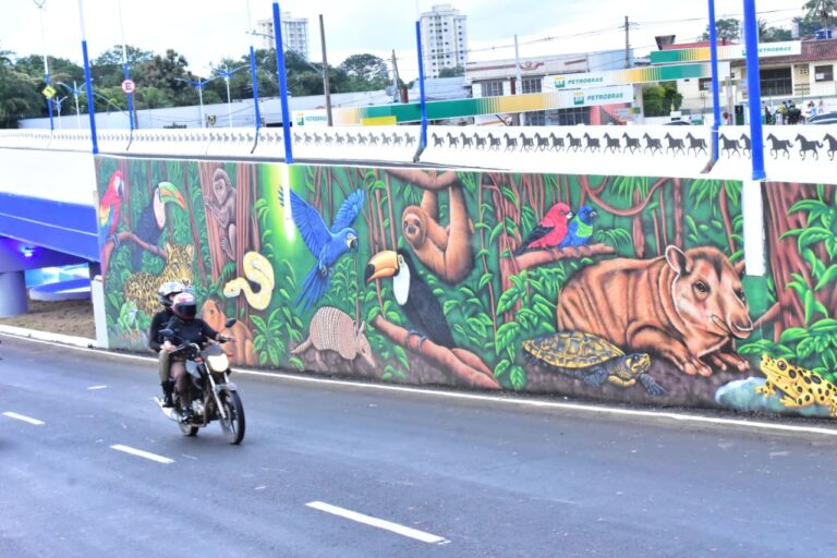 As laterais do Elevado Mamedio Bittar, que será inaugurado na noite desta sexta-feira (20), ganhou cores com as grafites nas paredes.
