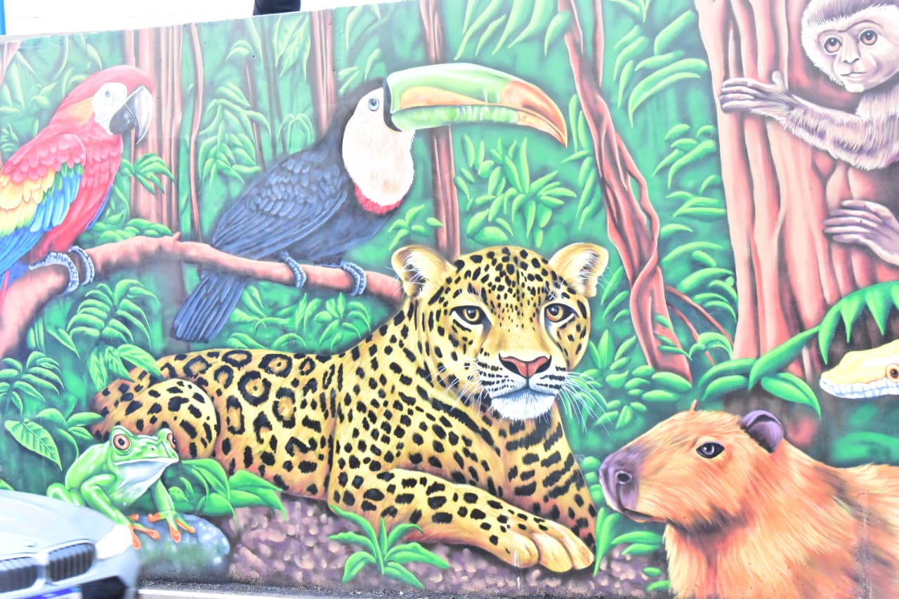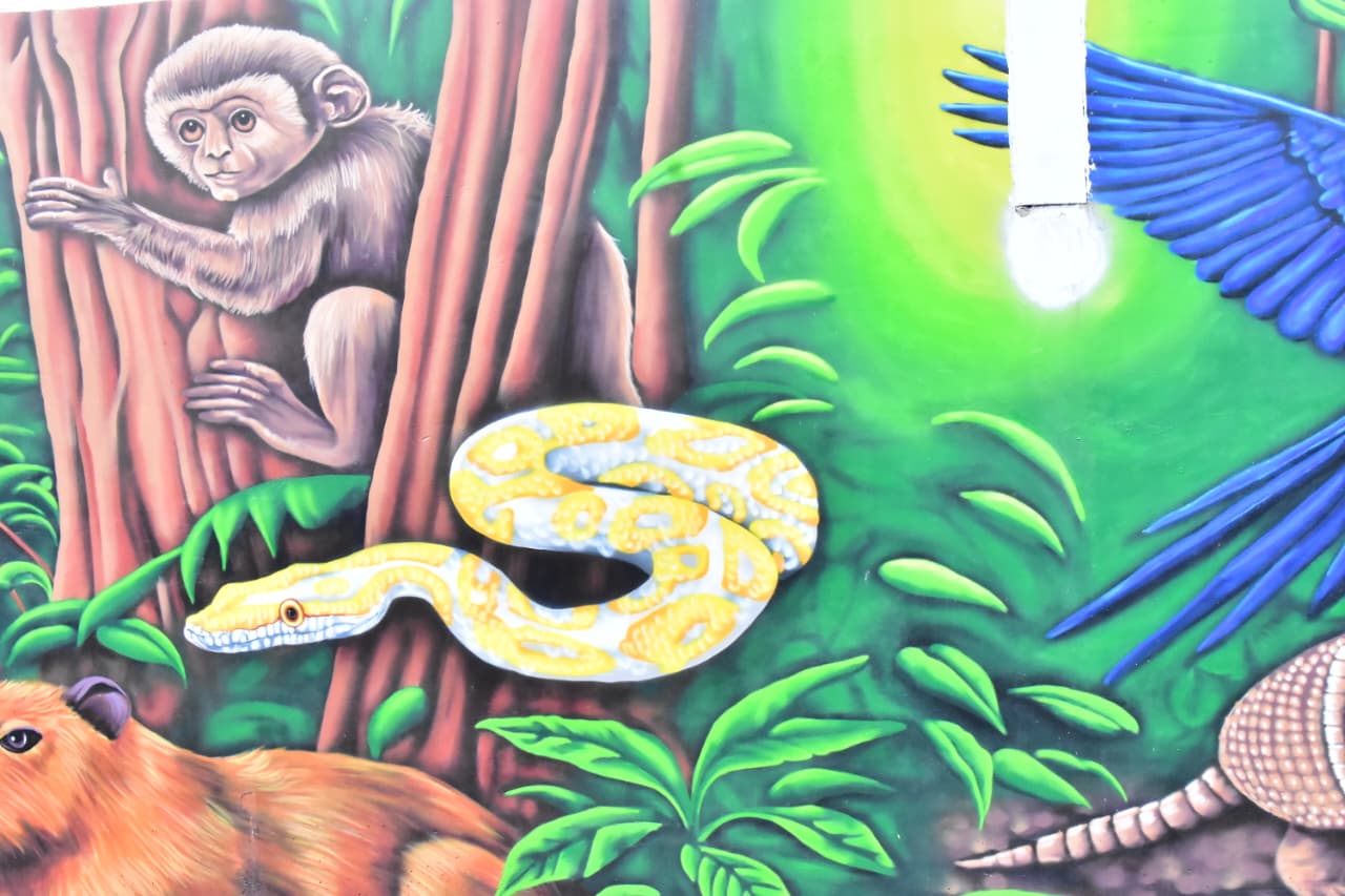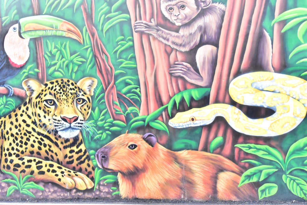 As pinturas, feitas pelo artista Mahatma Mahá, homenageiam povos indígenas, a agricultura, os pequenos produtores e fauna da Amazônia.