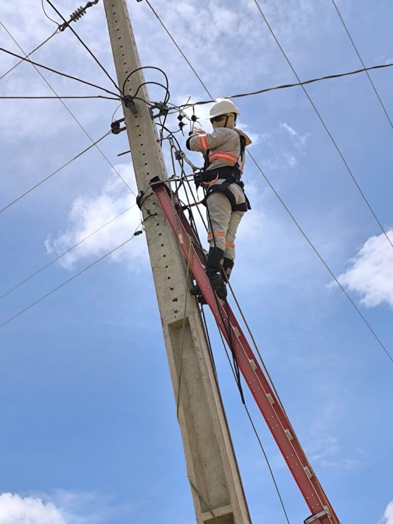 A energia de quem está começando vem de Celiane da Silva. Com menos de dois meses de atuação como eletricista de rede de distribuição, ela já demonstra segurança, entusiasmo e orgulho pela profissão.