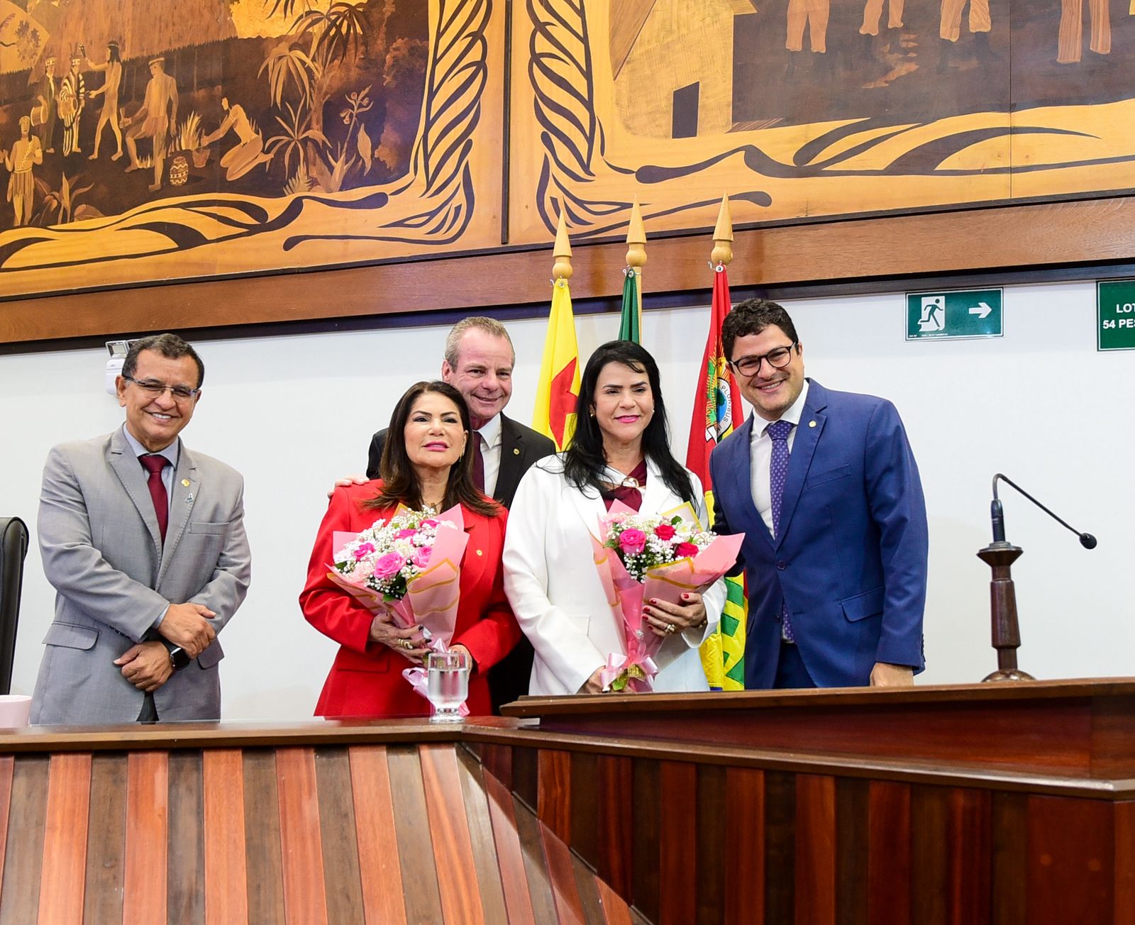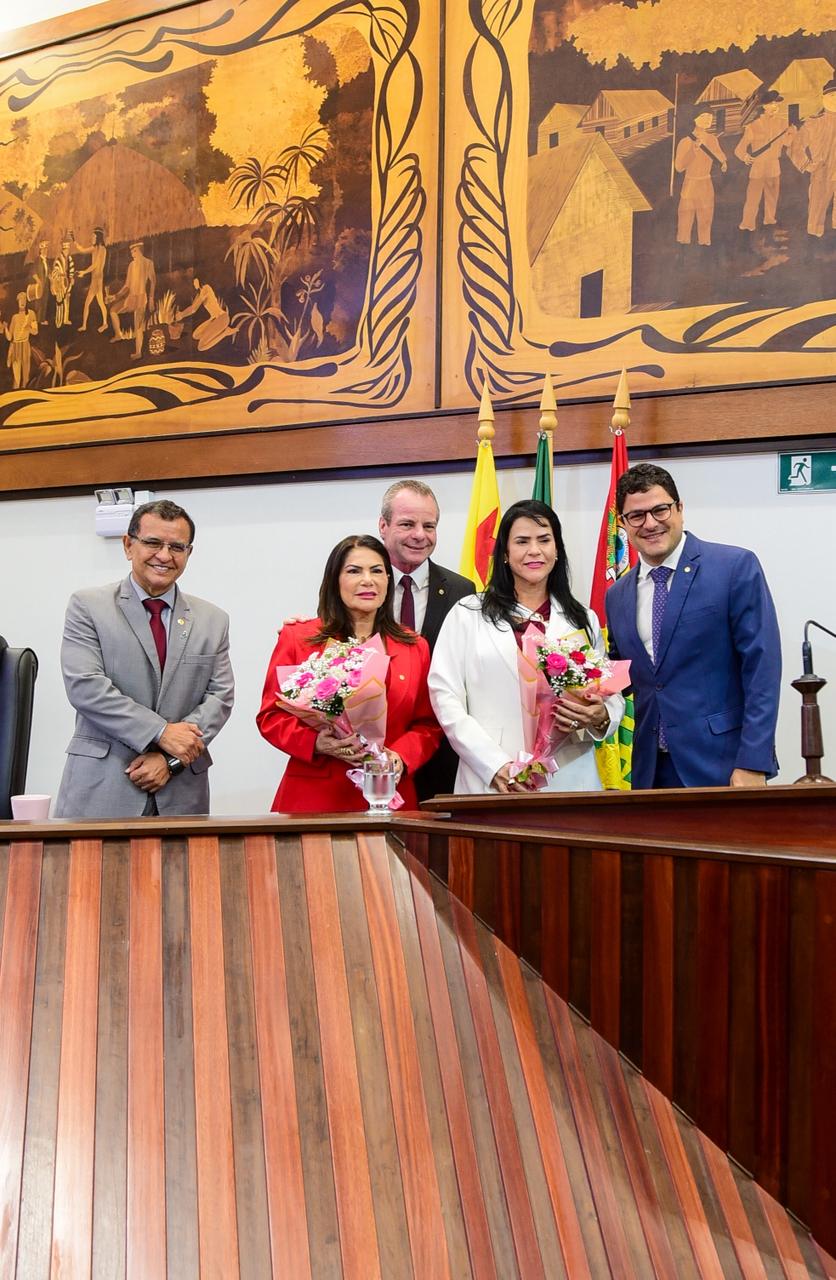 Homenagens às mulheres – Em alusão ao Dia Internacional da Mulher, os deputados homenagearam ainda as deputadas Maria Antônia e Antônia Sales. Eduardo Ribeiro foi incumbido de agraciar a colega parlamentar Maria Antônia com um buquê de flores, enquanto o deputado Pedro Longo homenageou Sales.