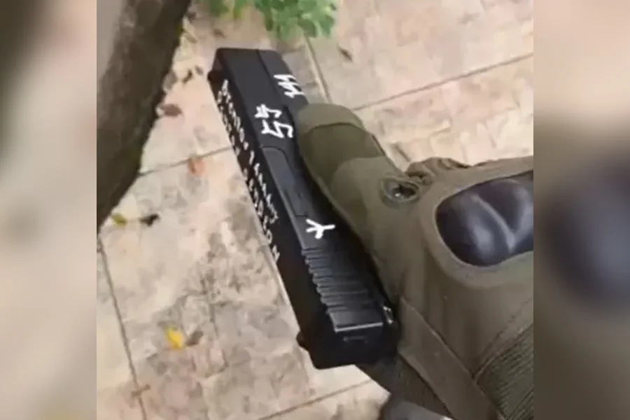 Ao chegarem à residência do suspeito, os agentes foram recebidos pela mãe do jovem, que o reconheceu nas imagens e autorizou a entrada da equipe. O adolescente confessou a autoria do vídeo e entregou a mochila onde escondia o simulacro de arma, além de luvas, botas e roupas utilizadas na gravação.