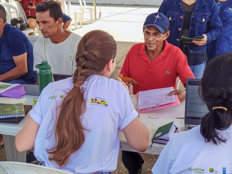 Lilian Nunes, Coordenadora do Projeto Floresta+ Amazônia explicou o funcionamento do programa e agradeceu a prefeitura de Cruzeiro do Sul pelo apoio ao mutirão.”A Prefeitura de Cruzeiro do Sul tem nos apoiado com toda a logística, todo o apoio necessário para trazer a população e realizar esse atendimento, que é tanto de regularização ambiental, de cadastro no CAR, de análise ambiental, de adesão ao Programa de Regularização Ambiental”, pontuou Lilian.