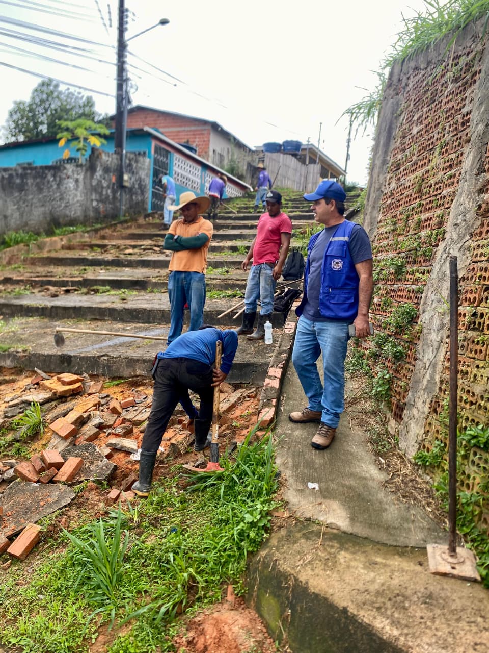 Outros serviços de infraestrutura seguem sendo realizados como o início de uma ampla recuperação da escadaria do Colégio Instituto Santa Terezinha que irá beneficiar a comunidade escolar que necessidade transitar pelo local e a retirada de atoleiros na BR 307.