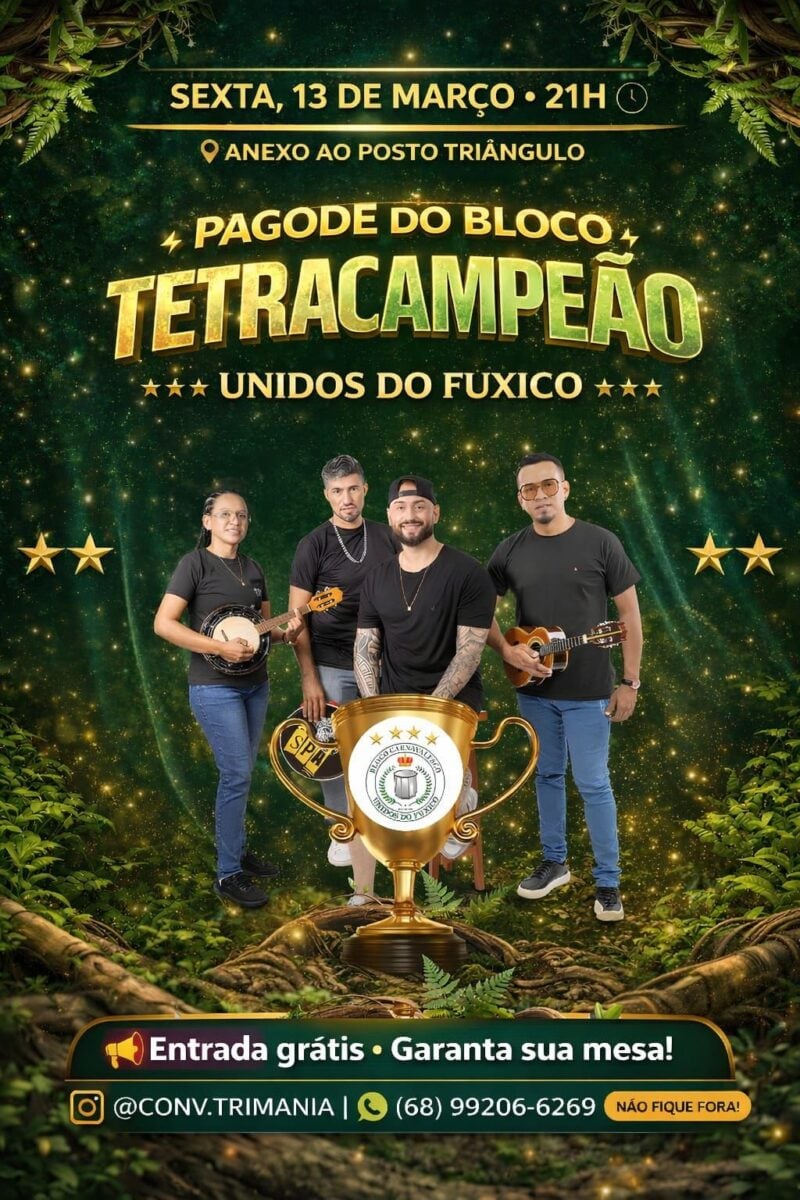 Intitulado “Pagode do Bloco Tetracampeão”, o encontro promete muita música, animação e a chance de celebrar a conquista da escola de samba de forma descontraída.