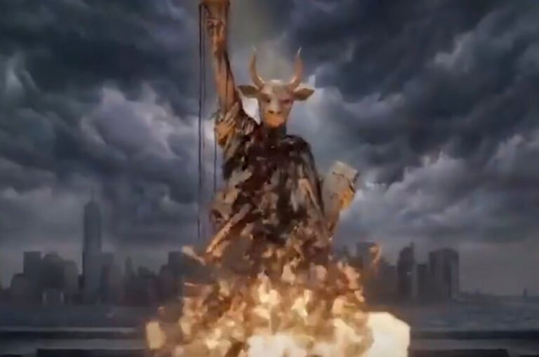 O ápice da provocação ocorre nos segundos finais da montagem. Sob a observação de líderes iranianos, um míssil é lançado em direção aos Estados Unidos, atingindo a Estátua da Liberdade. Em uma clara mensagem de guerra espiritual e ideológica, o monumento não exibe sua face original, mas sim a imagem de Baal, figura demonizada pelo cristianismo, sugerindo uma crítica à natureza da liberdade promovida pelo país.