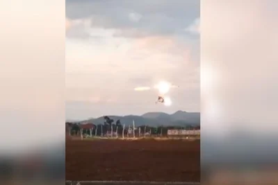 Um ultraleve atingiu a rede elétrica da cidade enquanto tentava aterrissar, provocando uma explosão de faíscas e deixando parte do município às escuras. O momento exato do acidente foi registrado por populares que acompanhavam a aproximação da aeronave.