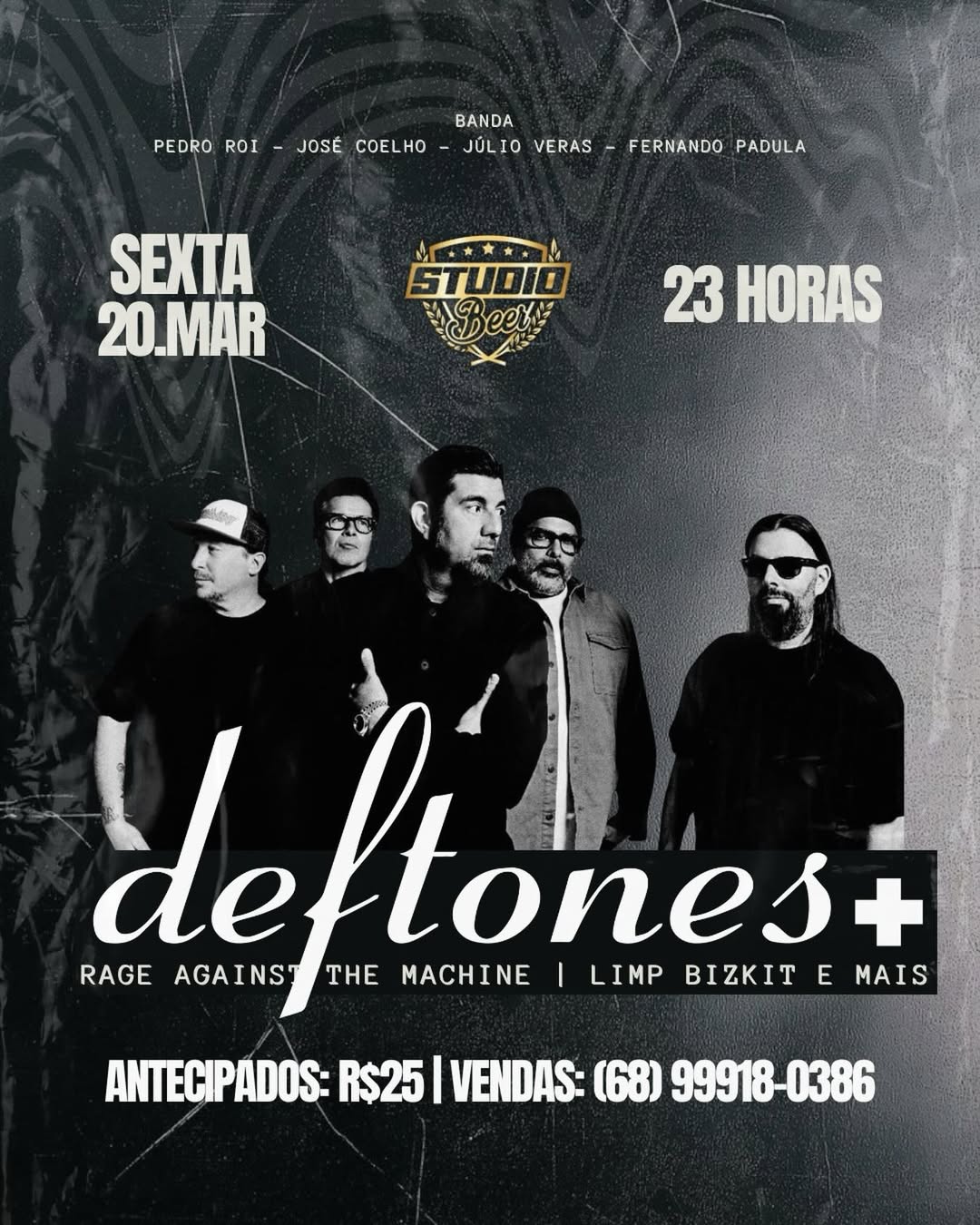 O Studio Beer, nesta sexta, será palco de um especial dedicado a três gigantes do rock: Deftones, Limp Bizkit e Rage Against the Machine., a partir das 23h. Os ingressos antecipados custam R$ 25,00 e podem ser adquiridos pelo contato (68) 99918-0386.