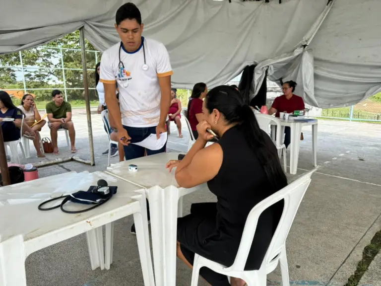 O atendimento da tenda acontece de 7h às 13h e oferece todos os serviços das unidades como atendimentos médico e de enfermagem, vacinação,testes para malária, fornecimento de medicamentos e agendamento de exames.
