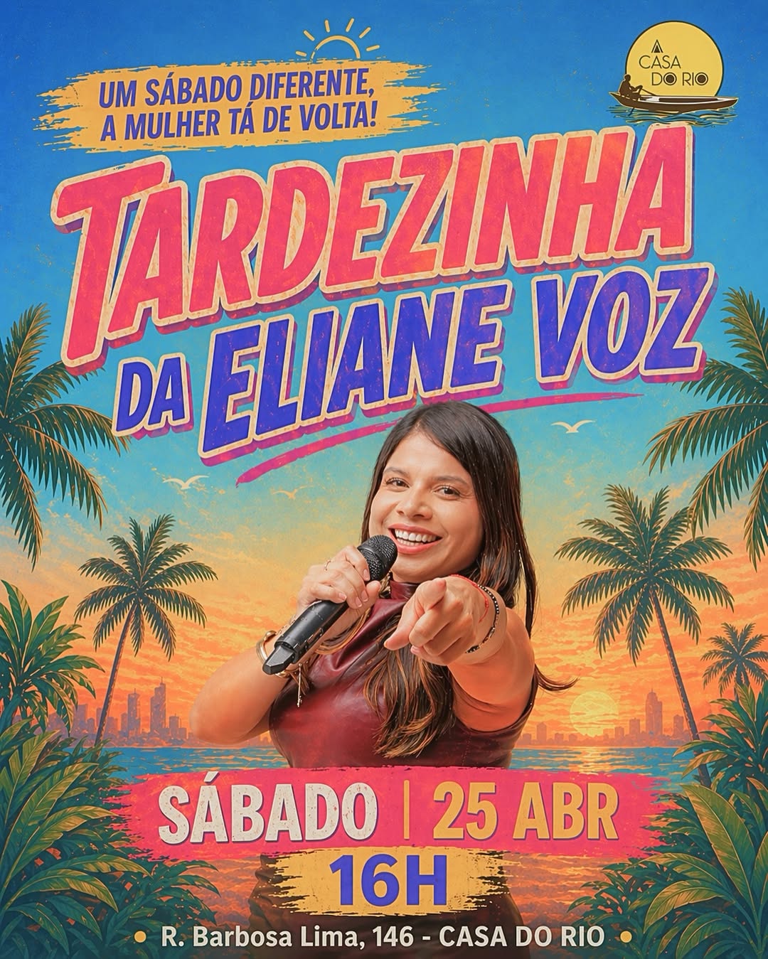 A Casa do Rio recebe o Tardezinha, com Eliane Voz, neste sĂĄbado (25), Ă s 16h.