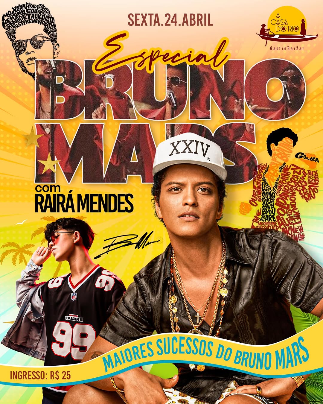 Nesta sexta-feira, a Casa do Rio recebe o Especial Bruno Mars com Rairå Mendes. Os ingressos custam R$ 25,00, mais informaçÔes no perfil @rairamendesac.