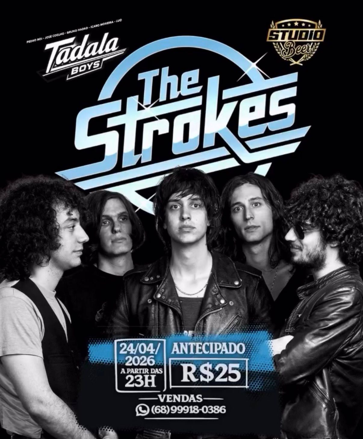 No Studio Beer acontece um especial de The Strokes com a banda Tadala Boys tocando mĂșsicas de TODOS os ĂĄlbuns da banda. Os ingressos antecipados custam R$ 25,00 e podem ser adquiridos pelo contato (68) 99918-0386.