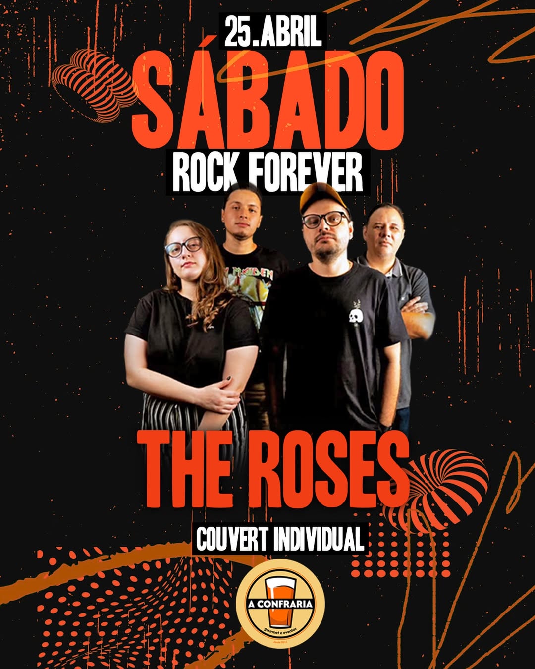 Na Confraria, a banda The Roses comanda o repertĂłrio completo de sucessos, a partir das 19h. SerĂĄ cobrado couvert artĂ­stico individual.
