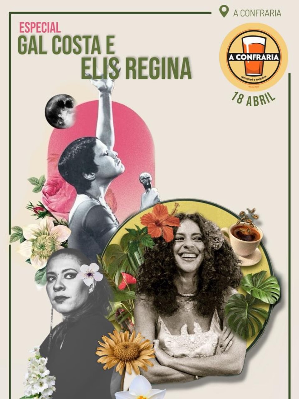A Confraria apresenta o Especial Gal Costa e Elis Regina, a partir das 21h. Mais informações e vendas (68) 99987-9105.