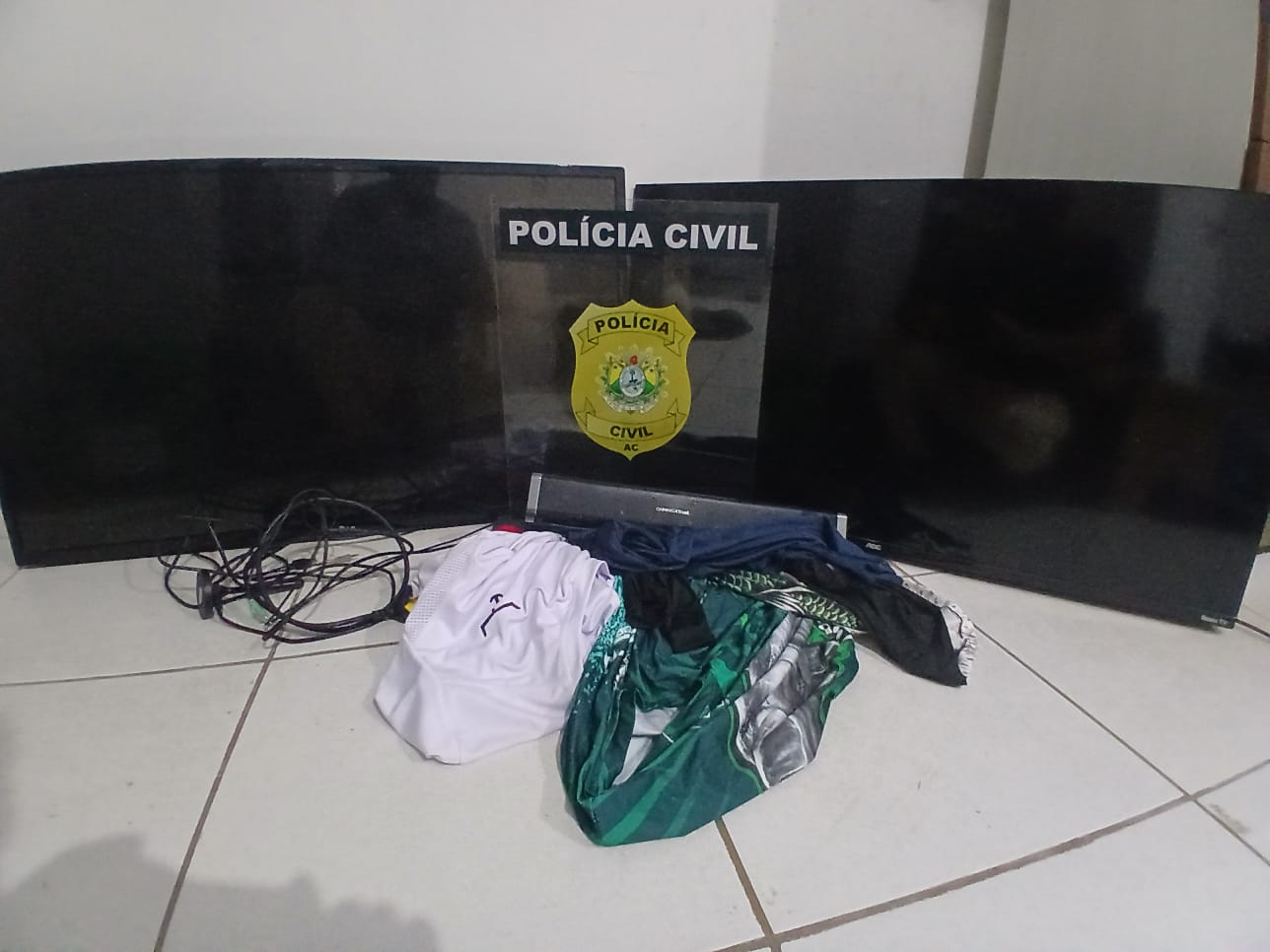 A investigação tomou novos rumos ao encontrar, em posse do suspeito foragido, duas televisões. A polícia suspeita que os aparelhos tenham sido furtados de um apartamento na região central da cidade no mesmo dia.