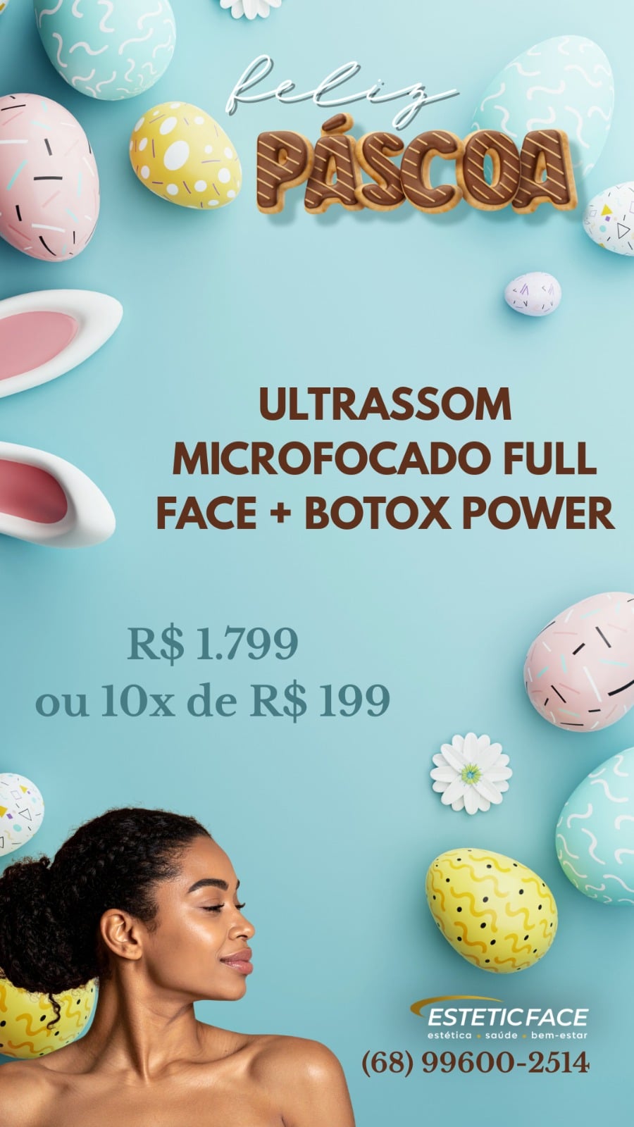 Aproveite a promoção especial: Ultrassom Microfocado Full Face + Botox Power por apenas 10x de R$ 199.