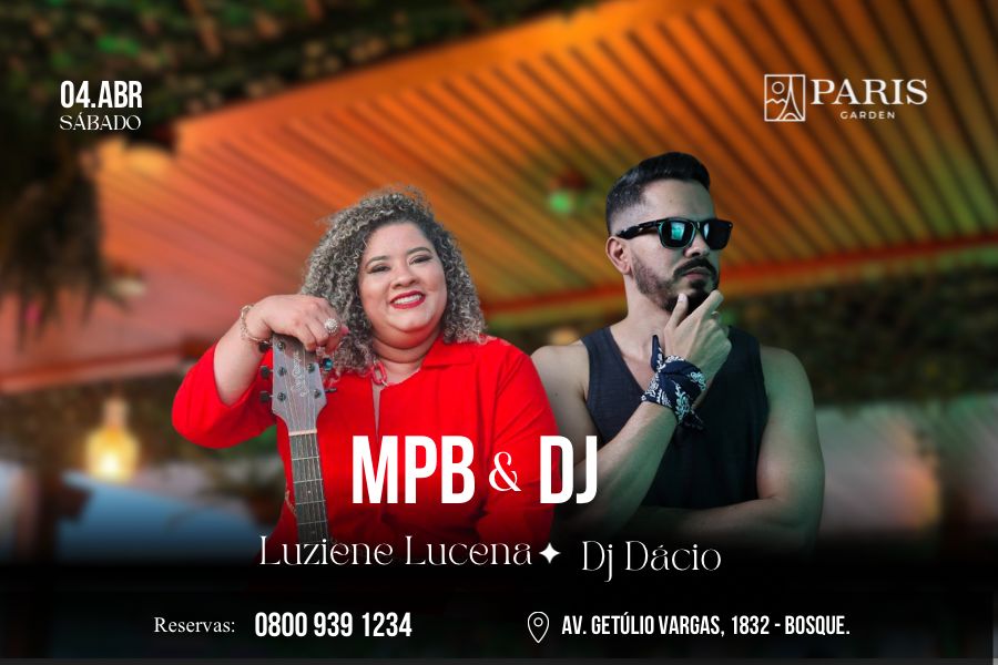Quem ainda não decidiu o que fazer neste sábado (4) já tem um destino certo: o Paris Garden, em Rio Branco, recebe a cantora Luziene Lucena e o DJ Dácio para uma noite que promete unir o melhor da MPB com música eletrônica, em um ambiente conhecido por reunir público diverso e animado.