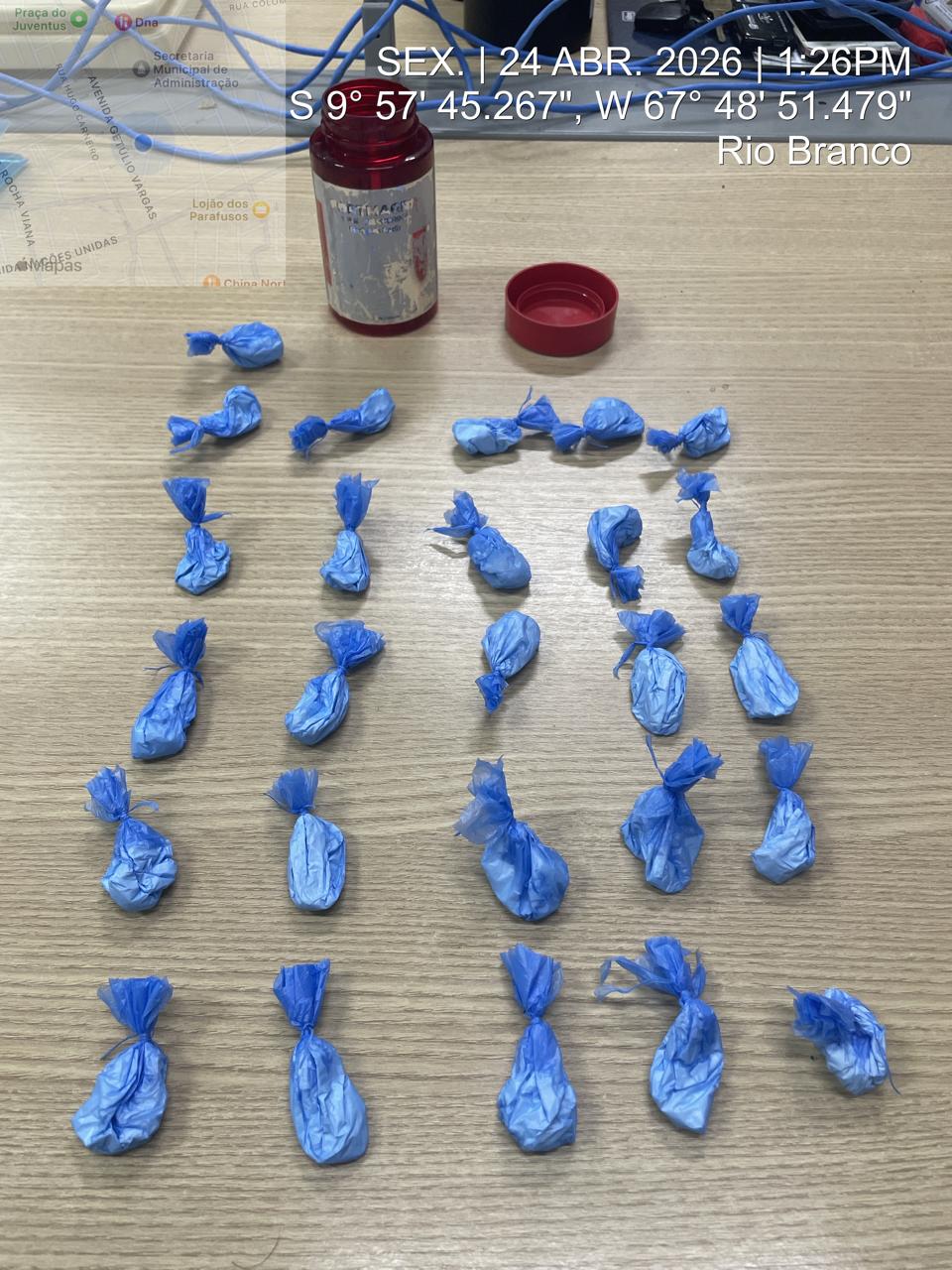 Durante a ação, investigadores da Delegacia de Repressão ao Narcotráfico (Denarc) apreenderam 26 trouxinhas de maconha, um invólucro de cocaína e dinheiro em espécie, valor que, segundo a polícia, pode ter origem na venda de entorpecentes.