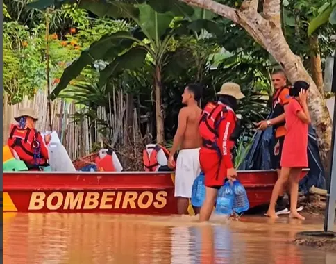 “Estamos aqui prestando ajuda, retirando famílias de suas casas e atuando como voluntários junto ao Corpo de Bombeiros”, afirmou um dos integrantes durante a ação.