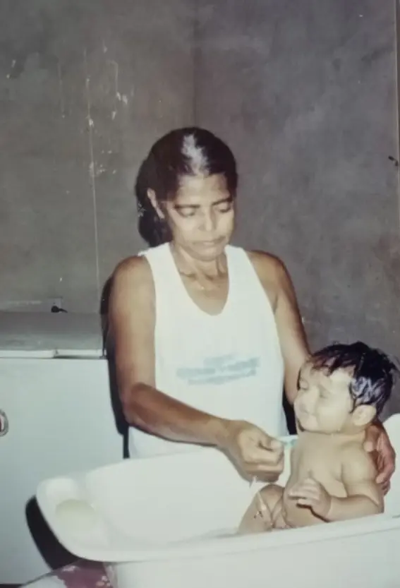 Dona Raiimndo dando banho no neto/Foto cedida a coluna Douglas Richer