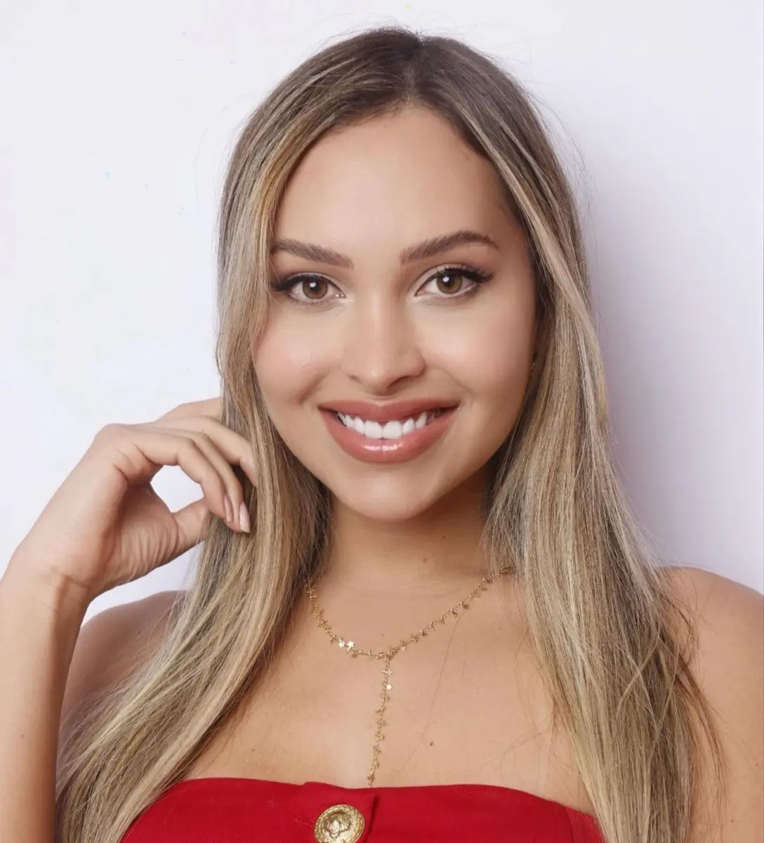 Reunida com um grupo de colegas, a Miss Trans Acre falou sobre seu estado e a felicidade de representar o Acre e também ser a primeira mulher trans a participar da competição.