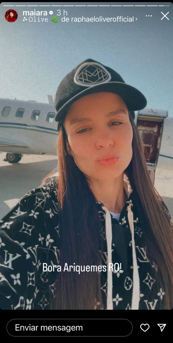 Maiara registrou seu embarque em um voo particular nas redes sociais. Além do show, a dupla está divulgando sua nova música com Guilherme, intitulada “O Meu Coração em Suas Mãos”, disponível no YouTube e nas plataformas digitais.