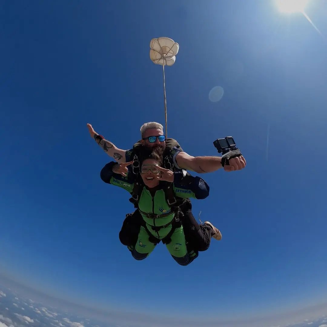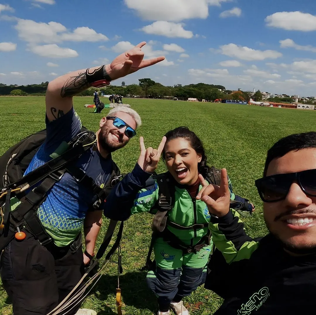 Sandy Monteiro: O mais emocionante foi antes do pulo, quando me posicionei na porta da aeronave e o instrutor começou a contagem regressiva. Quando olhei para baixo e vi a paisagem, senti o vento e percebi que não havia mais volta. Depois, quando o paraquedas abriu, foi mágico. Queria congelar aquele momento.