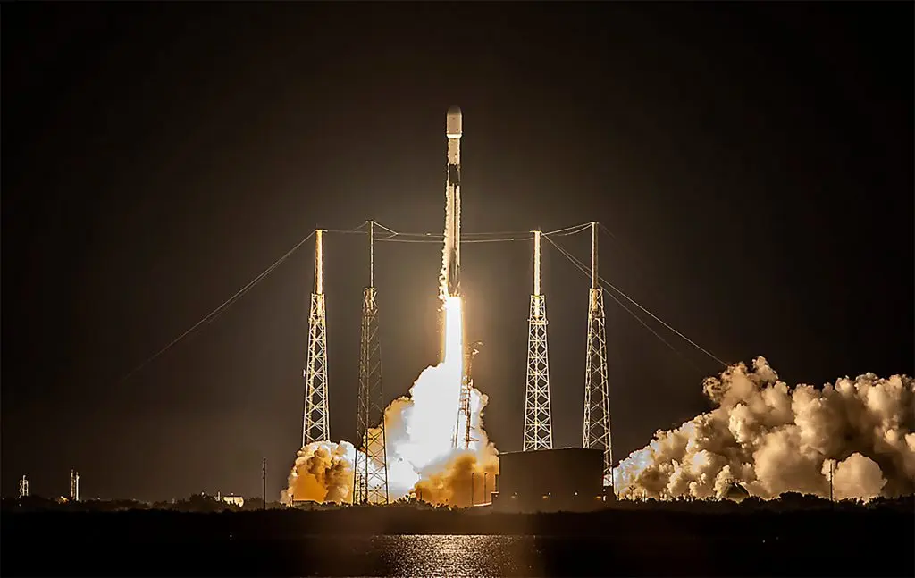 O último lançamento espacial do ano será feito pela SpaceX, com um foguete Falcon 9 levando satélites Starlink para a órbita da Terra no dia 31 de dezembro. Crédito: SpaceX