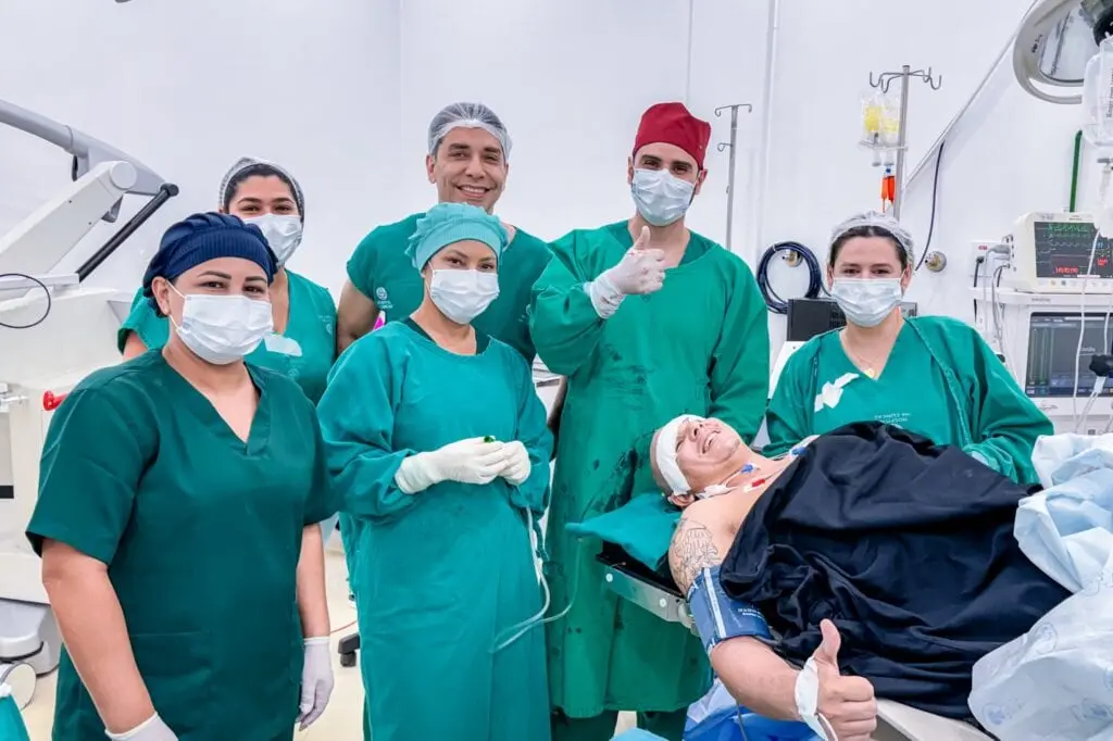 A equipe responsável pela cirurgia foi formada pelos neurocirurgiões Ivan Ortiz, Luan Messias e Juan Dorado, com apoio de profissionais especializados em anestesia e cuidados intensivos. Para Luan Messias, a intervenção foi decisiva para preservar a qualidade de vida do paciente: “Se não tivéssemos optado por essa abordagem, ele poderia ter perdido os movimentos de um lado do corpo. A cirurgia acordado nos permitiu mapear áreas críticas e agir com total precisão.”