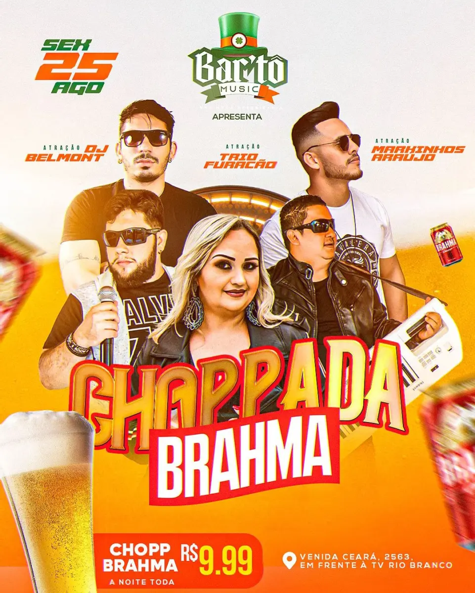 Venha aproveitar uma noite inesquecível no Bartô Music com a incrível Choppada da Brahma! Nesta festa imperdível, você poderá desfrutar do delicioso Chopp da Brahma a noite toda por apenas R$9,99. Prepare-se para se refrescar com o chopp mais gelado da cidade enquanto curte as melhores atrações.
