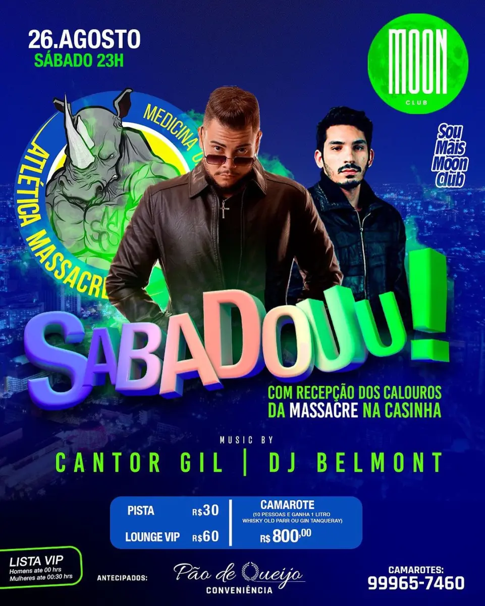Neste sábado (6), a aguardada recepção dos calouros da Atlética Massacre da Associação Atlética Acadêmica de Medicina da Faculdade Barão do Rio Branco ganha vida na badalada casa noturna Moon Club. O evento promete ser uma celebração memorável, onde os novos estudantes serão calorosamente acolhidos em meio a uma atmosfera repleta de empolgação e energia.