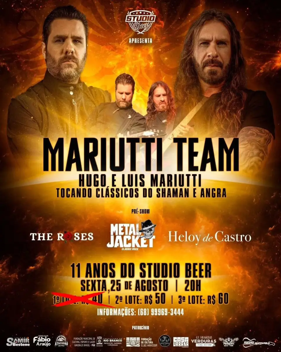 No dia 25 de agosto, uma celebração especial marcará o 11º aniversário do Studio Beer. Nessa ocasião única, o espaço terá a honra de receber diretamente de São Paulo os renomados irmãos Luís Mariutti, baixista do Shaman e ex-integrante do Angra, e Hugo Mariutti, guitarrista do Shaman. Pela primeira vez em Rio Branco – AC, eles irão brindar o público com um emocionante show, repleto de clássicos que marcaram as trajetórias das bandas Angra e Shaman.