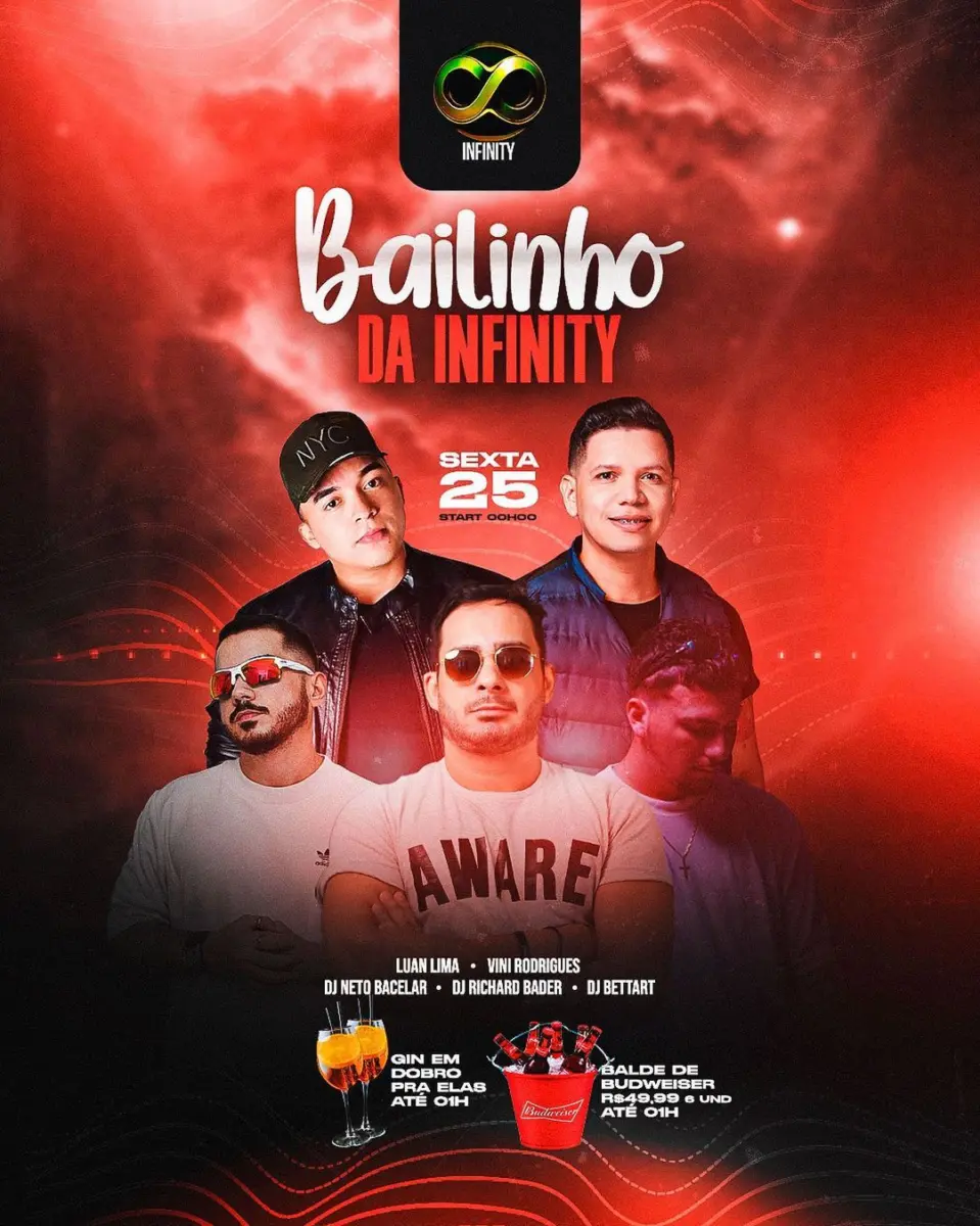 Portanto, prepare-se para dançar, se divertir e aproveitar cada instante do Bailinho da Infinity. Essa noite promete ser uma explosão de música, alegria e boas promoções, reunindo o melhor da cena musical e da diversão noturna em um só lugar.
