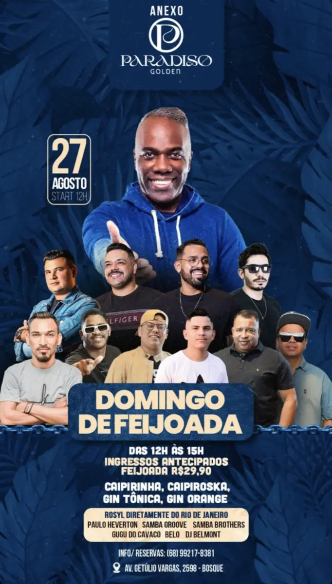 Neste domingo, dia 27, a casa noturna Paradiso Golden em Rio Branco, no Acre, será palco de um emocionante “Domingo de Feijoada”. O evento promete agitar os amantes do samba e da música brasileira com uma série de atrações imperdíveis.