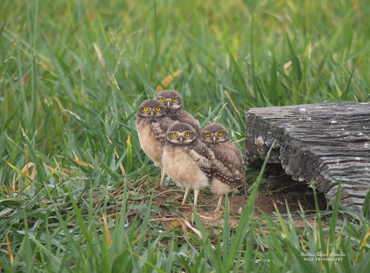Um grupo de corujas-buraqueiras foram capturadas em um lindo registro, pelo acreano Rafael Almeida, em Cruzeiro do Sul. Os olhares penetrantes dos animais chamaram atenção nas redes sociais. A coruja-buraqueira