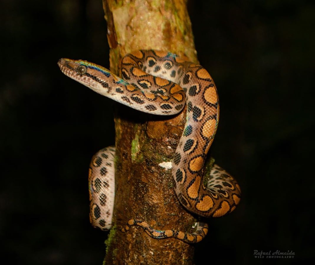 Outro registro do fotógrafo Rafael Almeida mostra a cobra Jiboia-arco-íris, salamanta Epicrates cenchria, na Universidade Federal do Acre (Ufac) – Campus Floresta. A Salamanta ou Jiboia-vermelha ou Jiboia-arco-íris (Epicrates cenchria