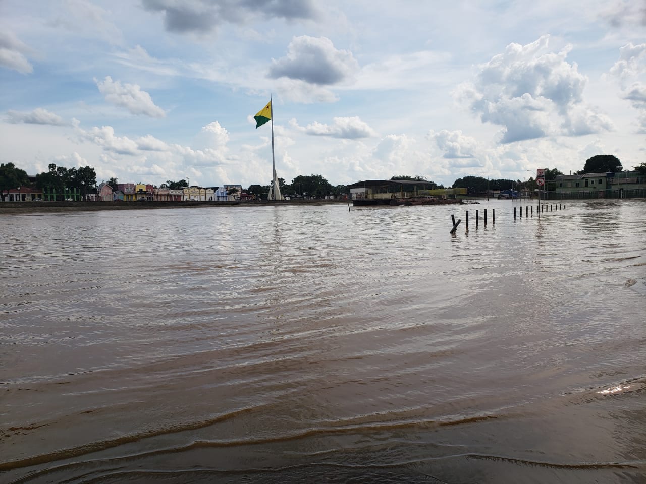 O Rio Acre atingiu 14,28m na tarde desta quinta-feira (9), de acordo com dados da Defesa Civil. A foto é da jornalista Wania Pinheiro.